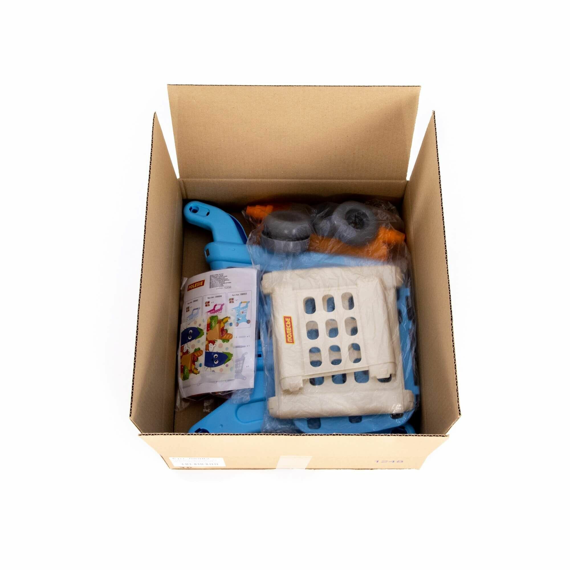 Тележка для маркета Полесье "Мини" синяя в коробке несобранная пластиковая, от 1 года