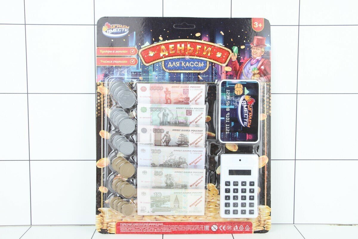 Ниже Вы можете прочитать отзывы на Игрушечные деньги набор с калькулятором и банковской картой Играем вместе / касса детская, ознакомится с подробными характеристиками, посмотреть интересные обзоры и фотографии на Игрушечные деньги набор с калькулятором и банковской картой Играем вместе / касса детская.