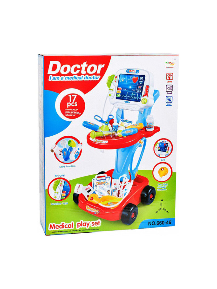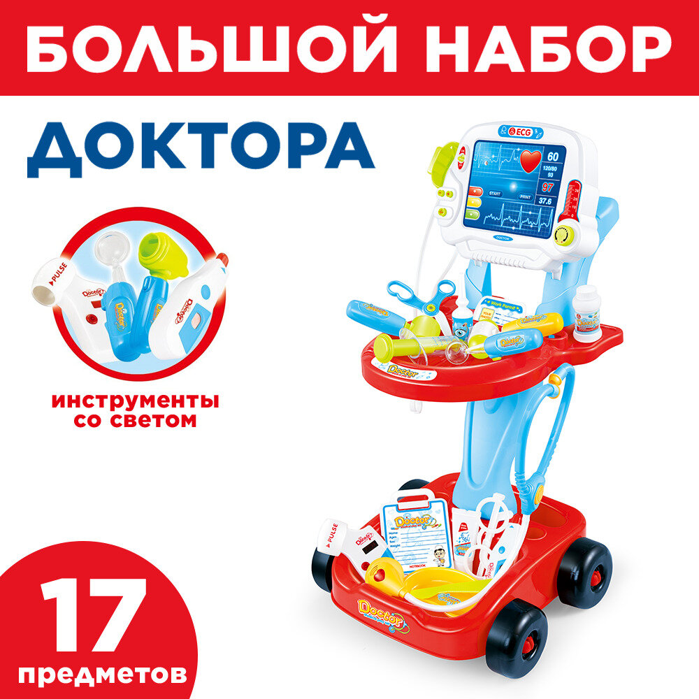 Купить Набор доктора детский со светом и звуком, 17 медицинских приборов в тележке