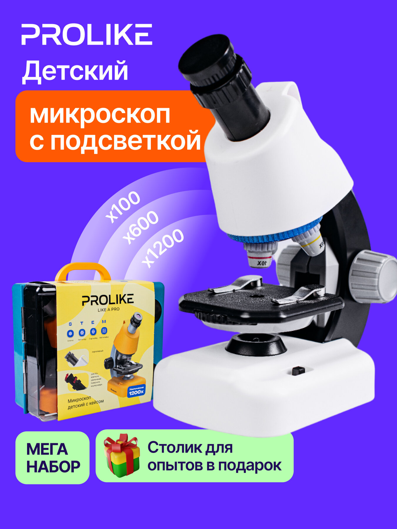 Купить Детский микроскоп Prolike в комплекте с кейсом, белый