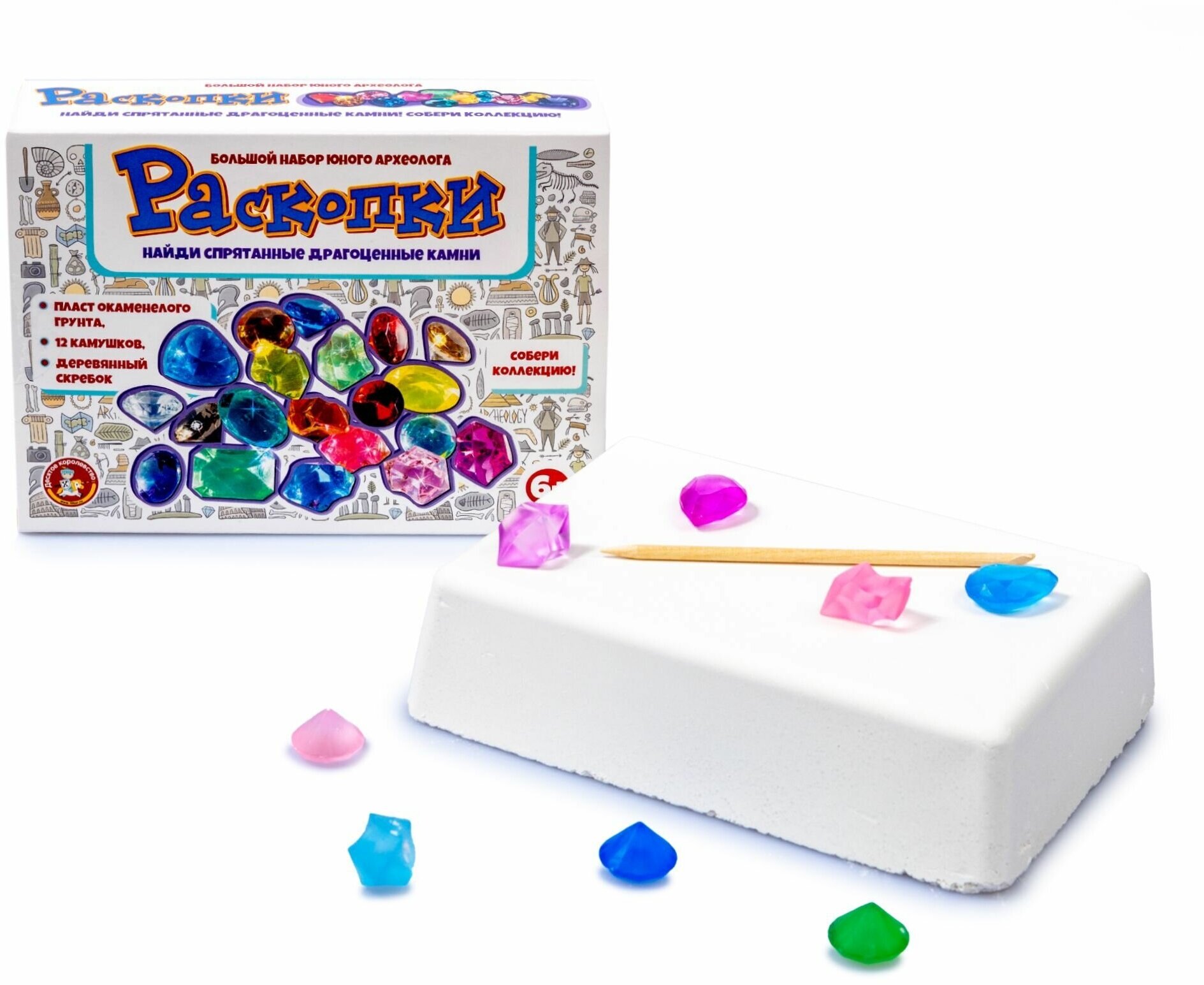 | Комплектация | пласт грунта (гипс), деревянный стек – 1 шт7, драгоценные камни из пластика - 12 шт. |