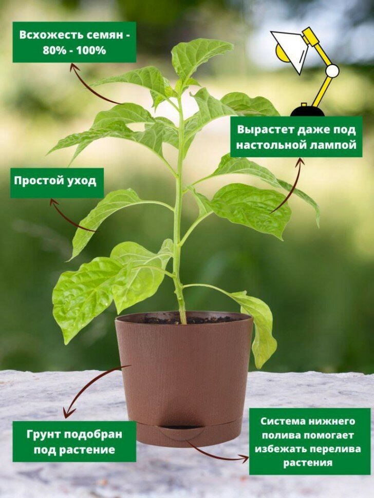 | Комплектация | земля, семена, горшок с системой прикорневого полива, перчатки, инструкция по сорту, рекомендации по посадке, рецепт уникального соуса |