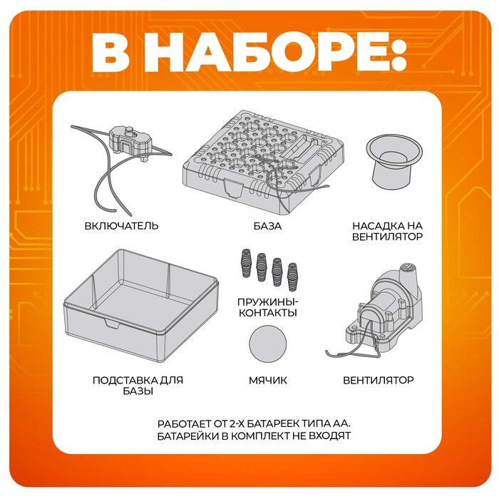 | Комплектация | вентилятор, насадка на вентилятор, база с отверстиями, включатель, мячик, соединители, подставка для базы с отверстиями |