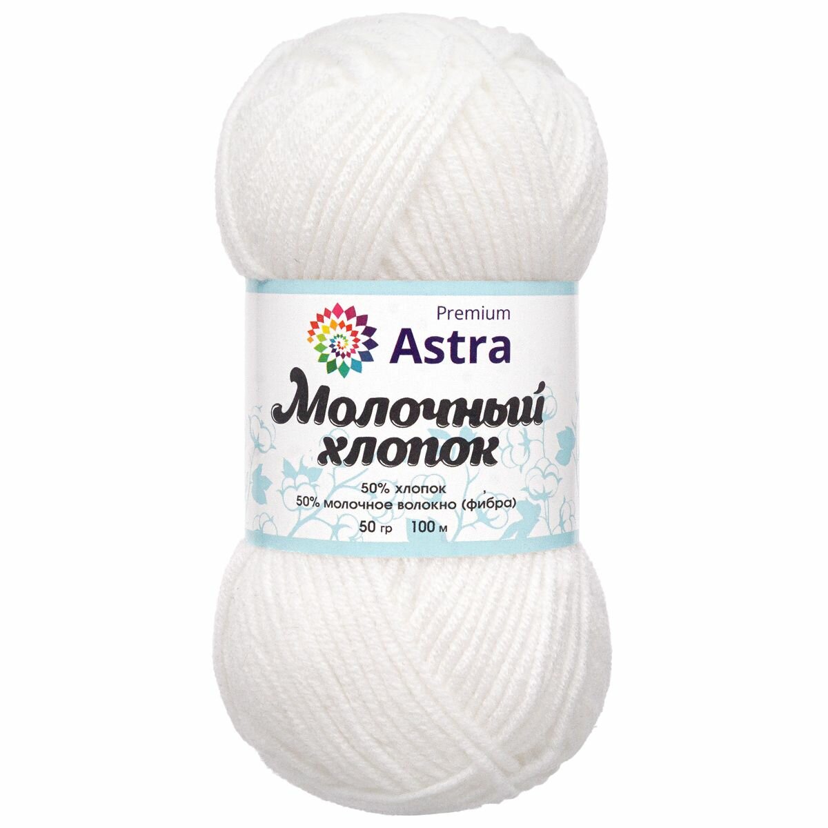 Пряжа Astra Premium "Молочный хлопок", 50 гр 100 м, 50% хлопок, 50% молочный акрил, 19 белый, 3 шт
