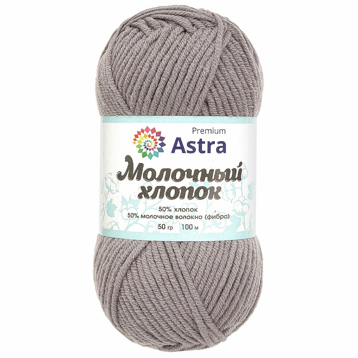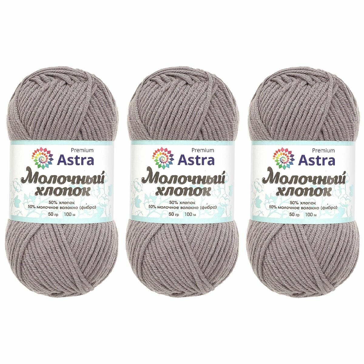 Пряжа для вязания Astra Premium 'Молочный хлопок' (Milk Cotton) 50гр 100м (+/-5%) (50% хлопок, 50% молочный акрил) (15 серый), 3 мотка