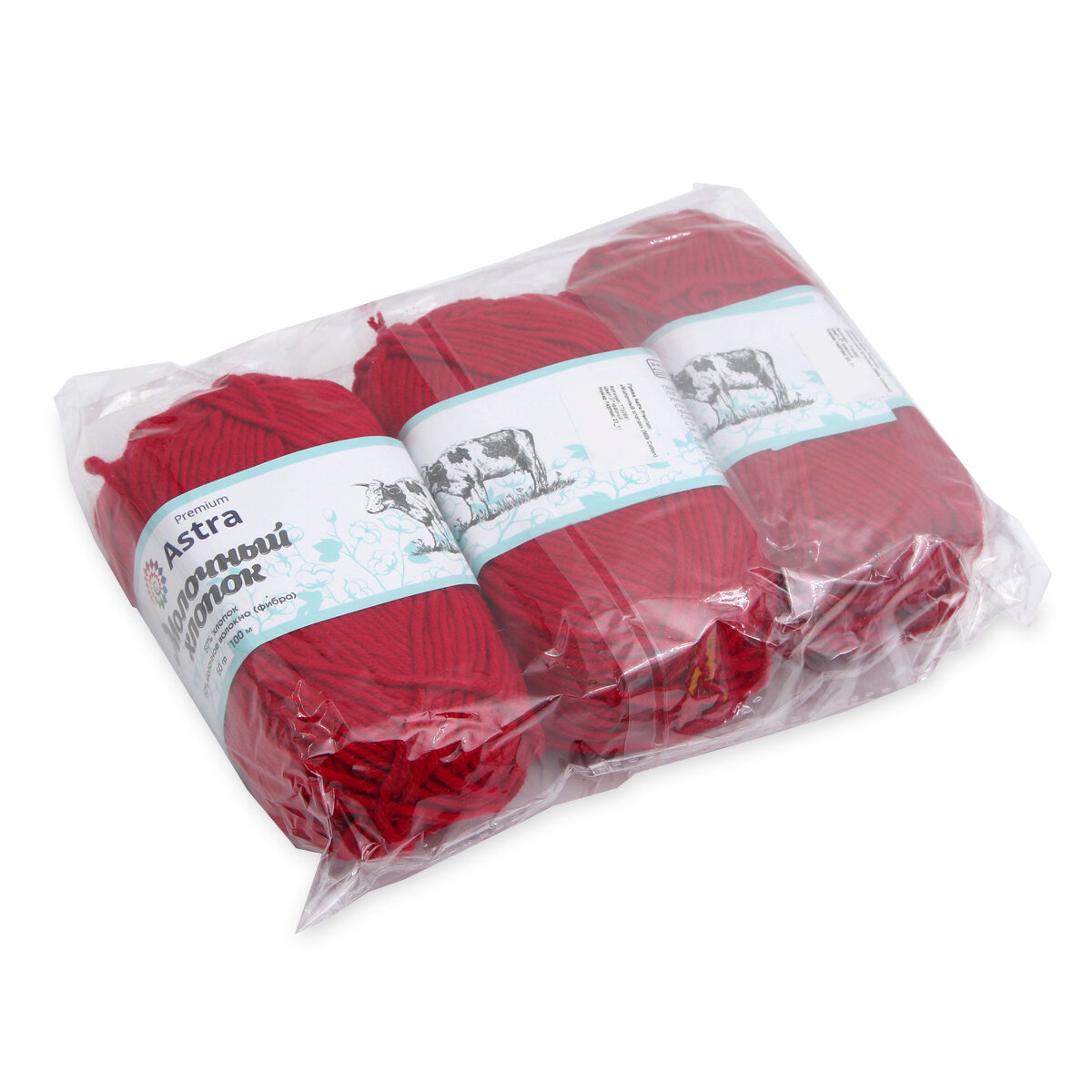 Пряжа для вязания Astra Premium 'Молочный хлопок' (Milk Cotton) 50гр 100м (+/-5%) (50% хлопок, 50% молочный акрил) (27 красный), 3 мотка