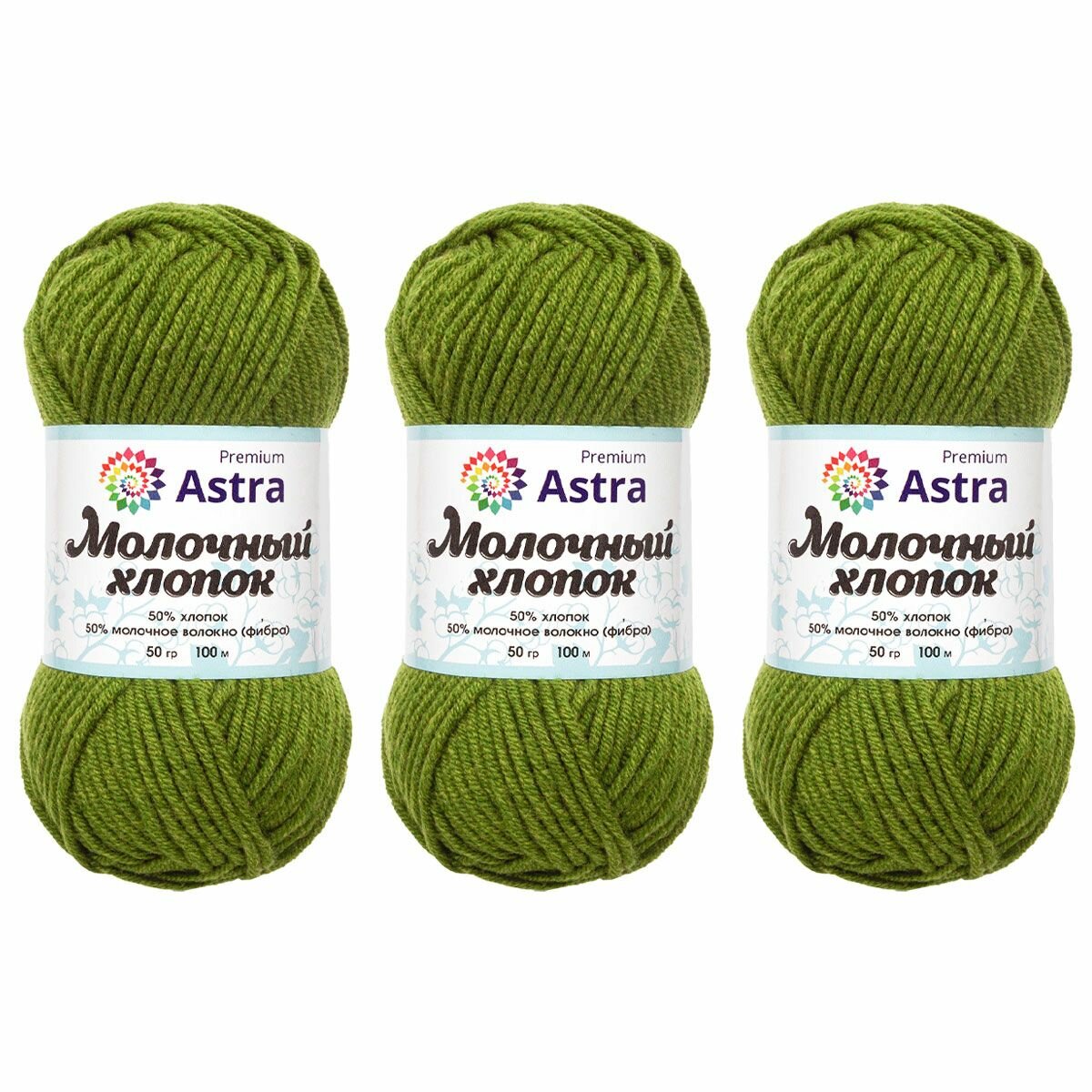 Купить Пряжа для вязания Astra Premium 'Молочный хлопок' 50г, 100м (хлопок, молочный акрил) (14 зеленый), 3 мотка