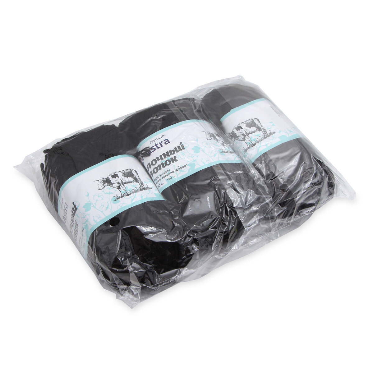 Купить Пряжа для вязания Astra Premium 'Молочный хлопок' 50г, 100м (хлопок, молочный акрил) (18 черный), 3 мотка