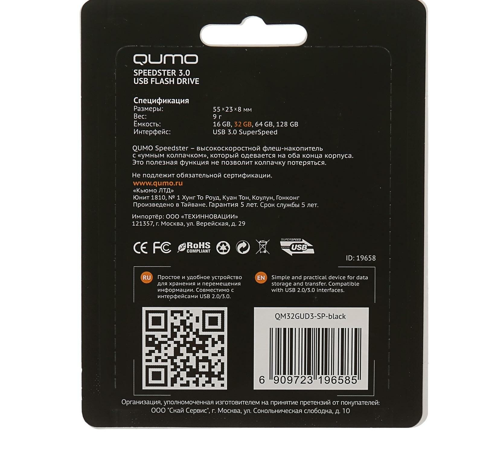 Флешка Qumo Speedster 32 Гб usb 3.0 Flash Drive - чёрный