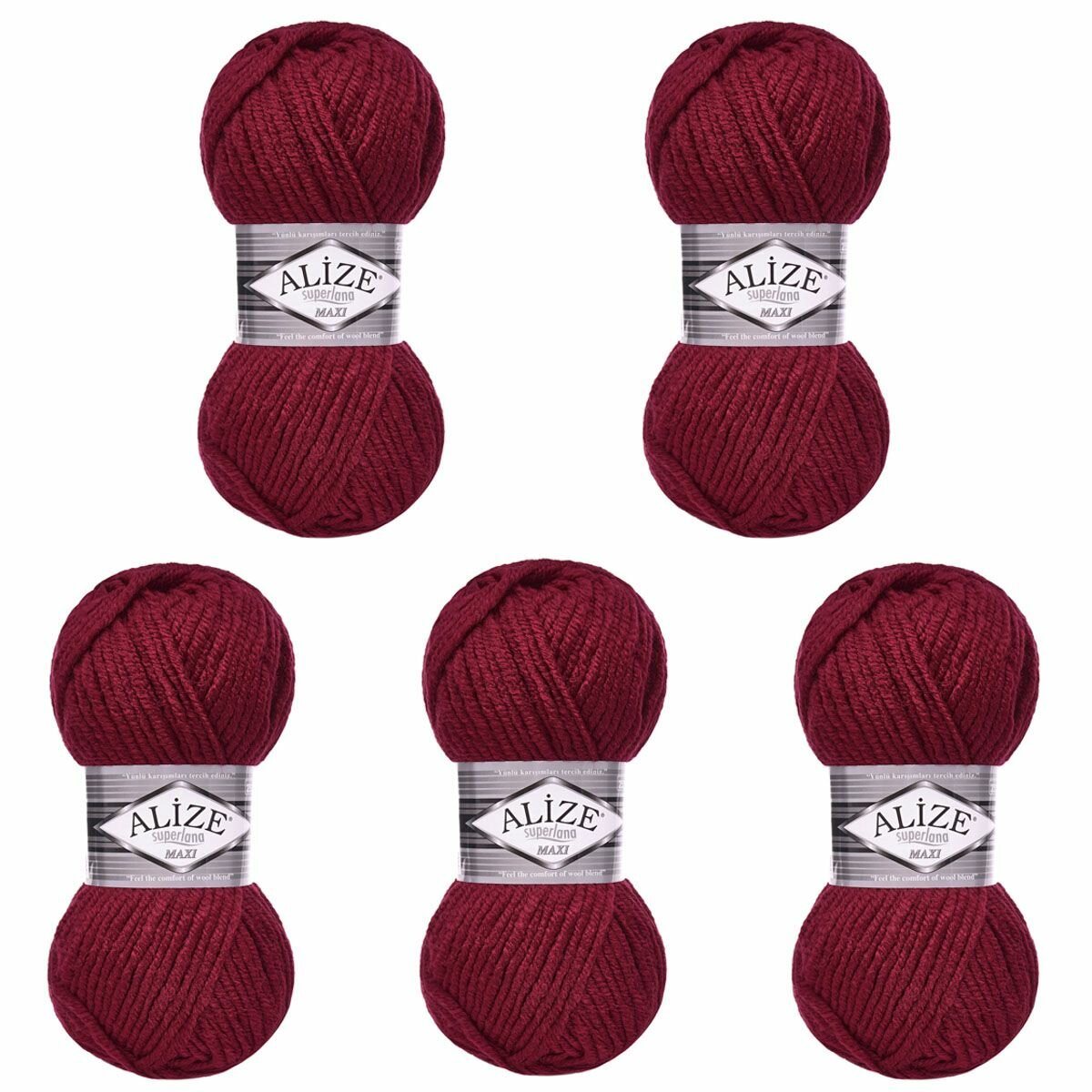 Купить Пряжа Alize Superlana Maxi бордовый (57), 25%шерсть/75%акрил, 100м, 100г, 5шт