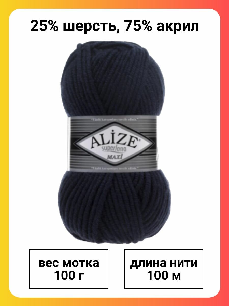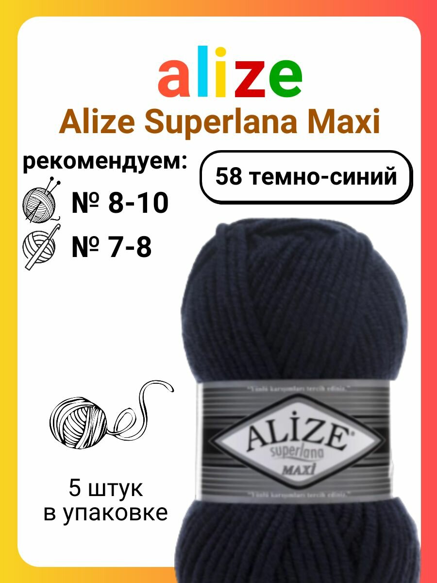 Купить Пряжа ALIZE Superlana Maxi 058 темно-синий Ализе Суперлана Макси 1 уп. 5 мот*100г*100м шерсть акрил