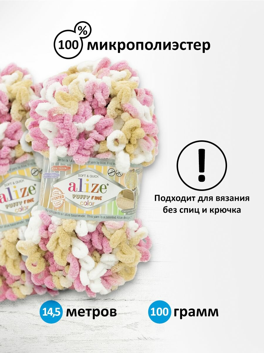 Пряжа для вязания плюшевая с петельками Alize Puffy Fine Color, цвет 6313, 100г, 14,5м, 5 шт/упак
