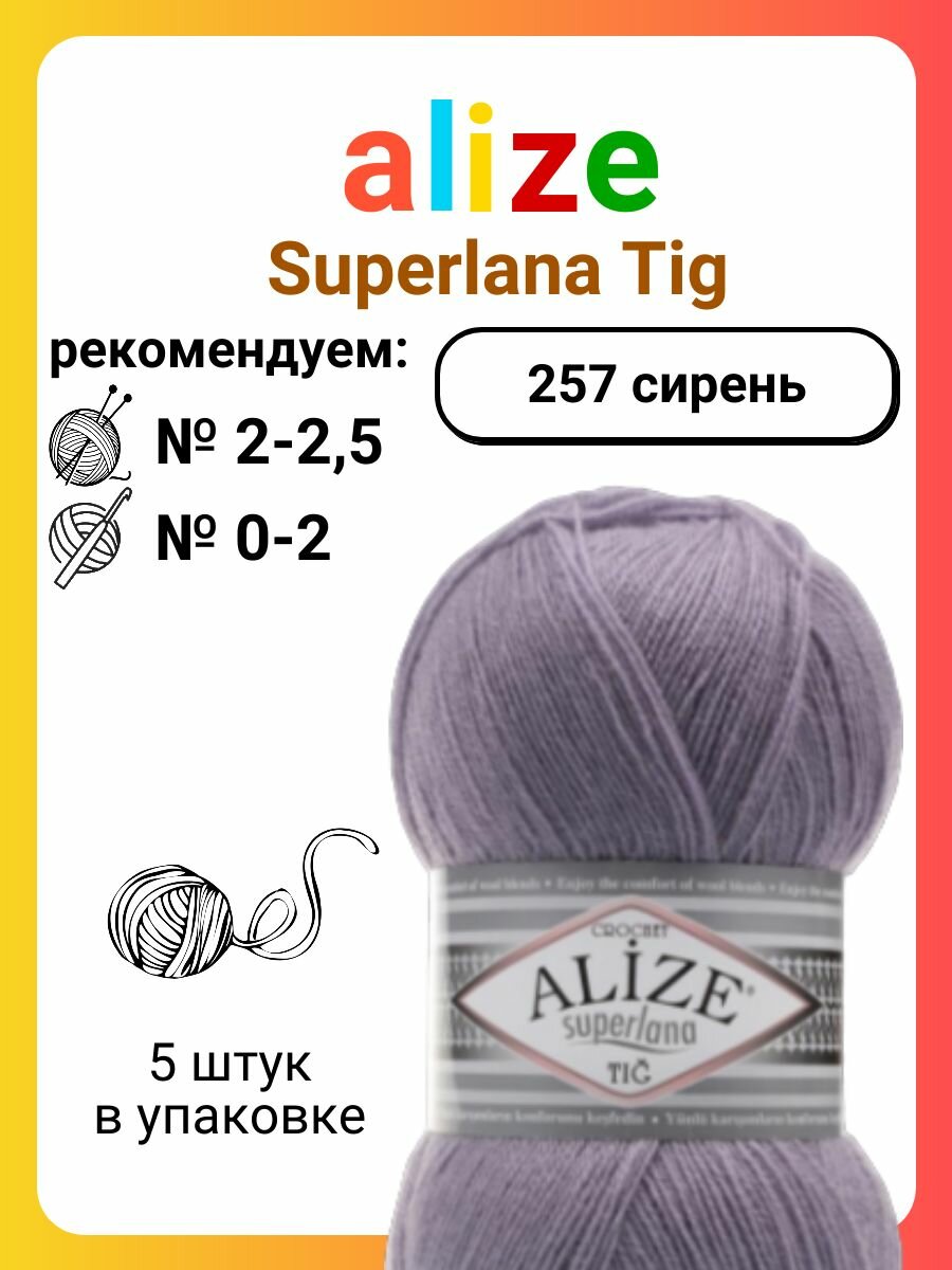 СохранитьПряжа Alize Superlana Tig 257 сирень, 100 г, 570 м, 5 штук интересное: