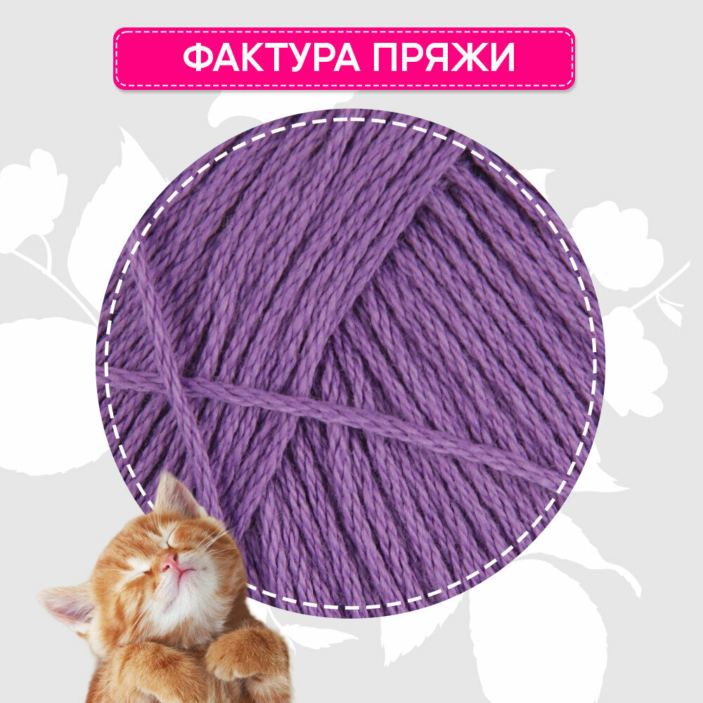 Пряжа для вязания крючком, спицами Пехорка Pehorka Хлопок натуральный тонкая, хлопок 100%, цвет 178 светло-сиреневый, 5 шт. по 100 г, 425 м