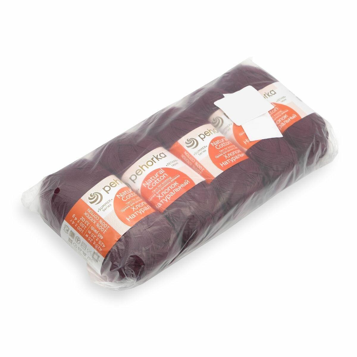 Пряжа Пехорка Хлопок натуральный бордо (007), 100%хлопок, 425м, 100г, 1шт