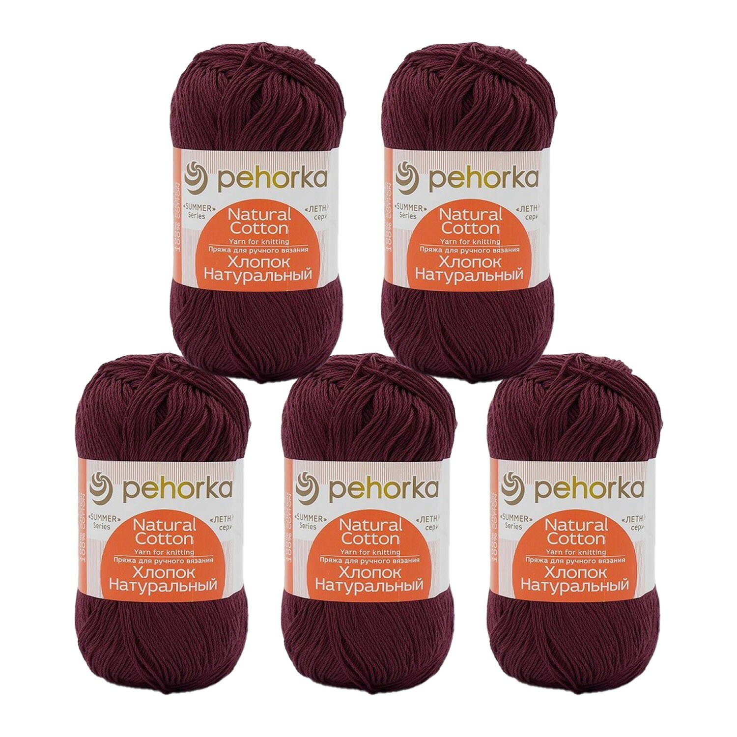 Купить Пряжа для вязания Пехорка 'Хлопок натуральный 'Кабле' 100г, 425м (100% хлопок) (191-Ежевика), 5 мотков