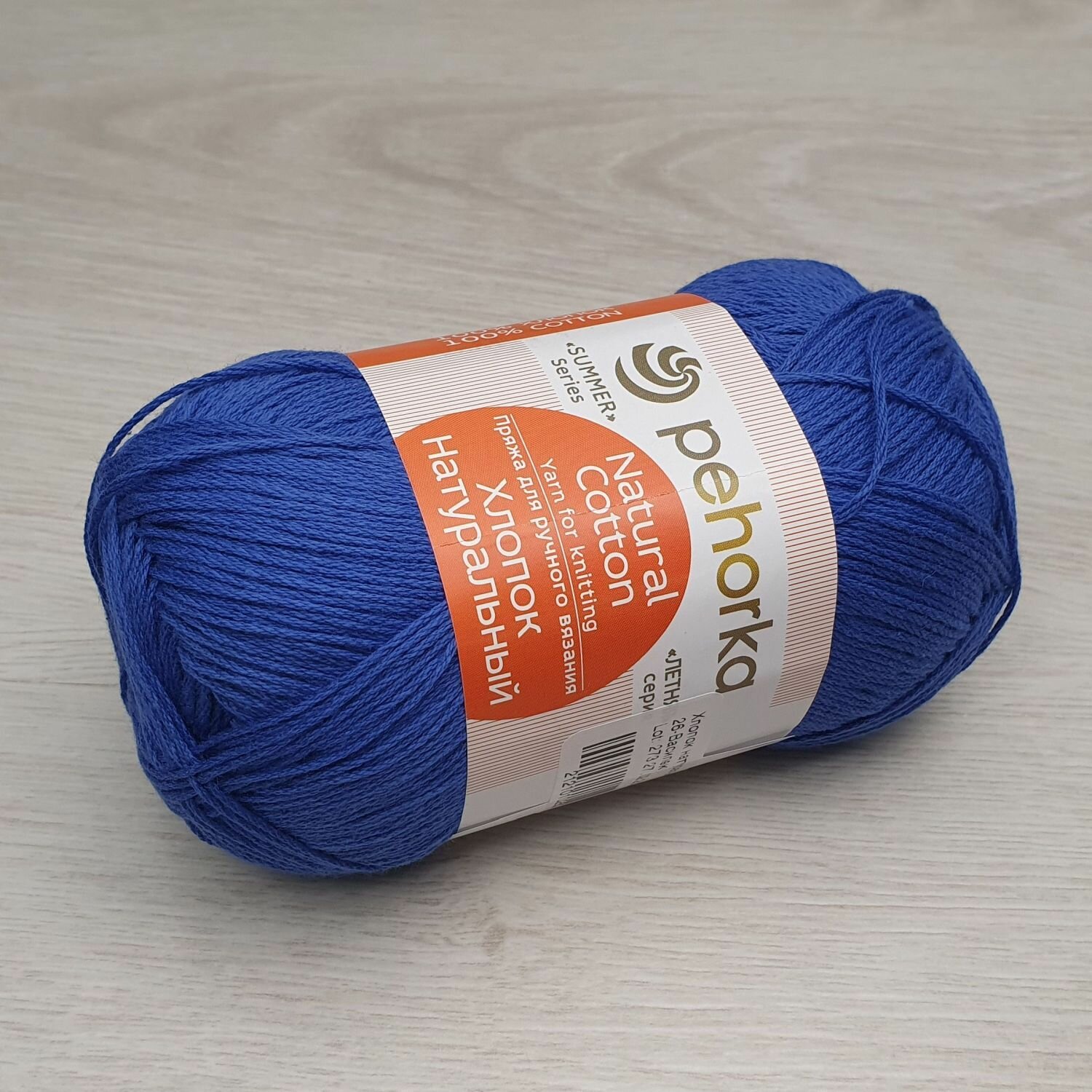 Пряжа Пехорка Хлопок натуральный голубой (005), 100%хлопок, 425м, 100г, 1шт