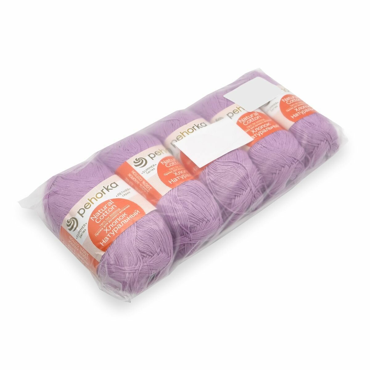 Пряжа для вязания крючком, спицами Пехорка Pehorka Хлопок натуральный тонкая, хлопок 100%, цвет 178 светло-сиреневый, 5 шт. по 100 г, 425 м