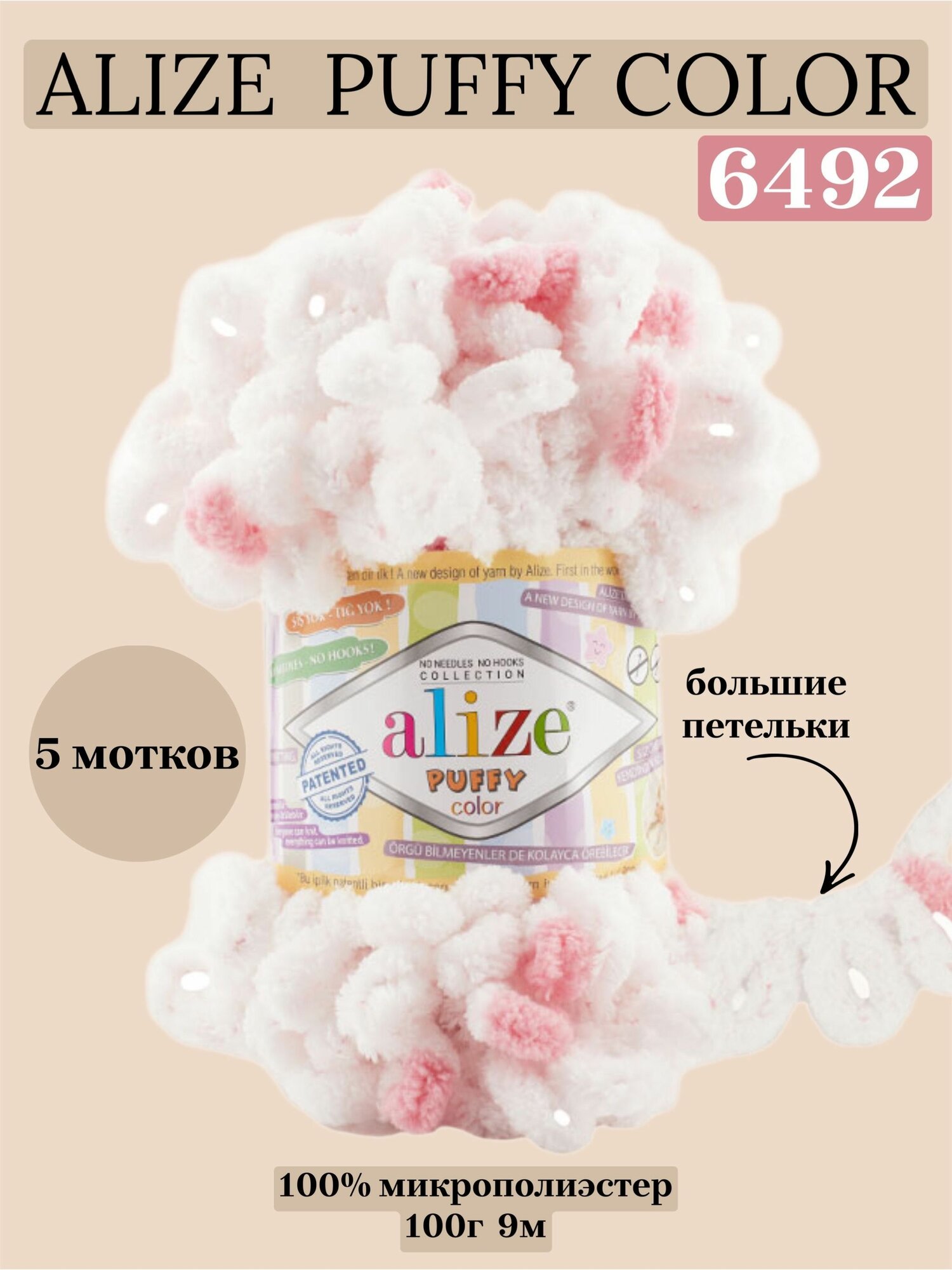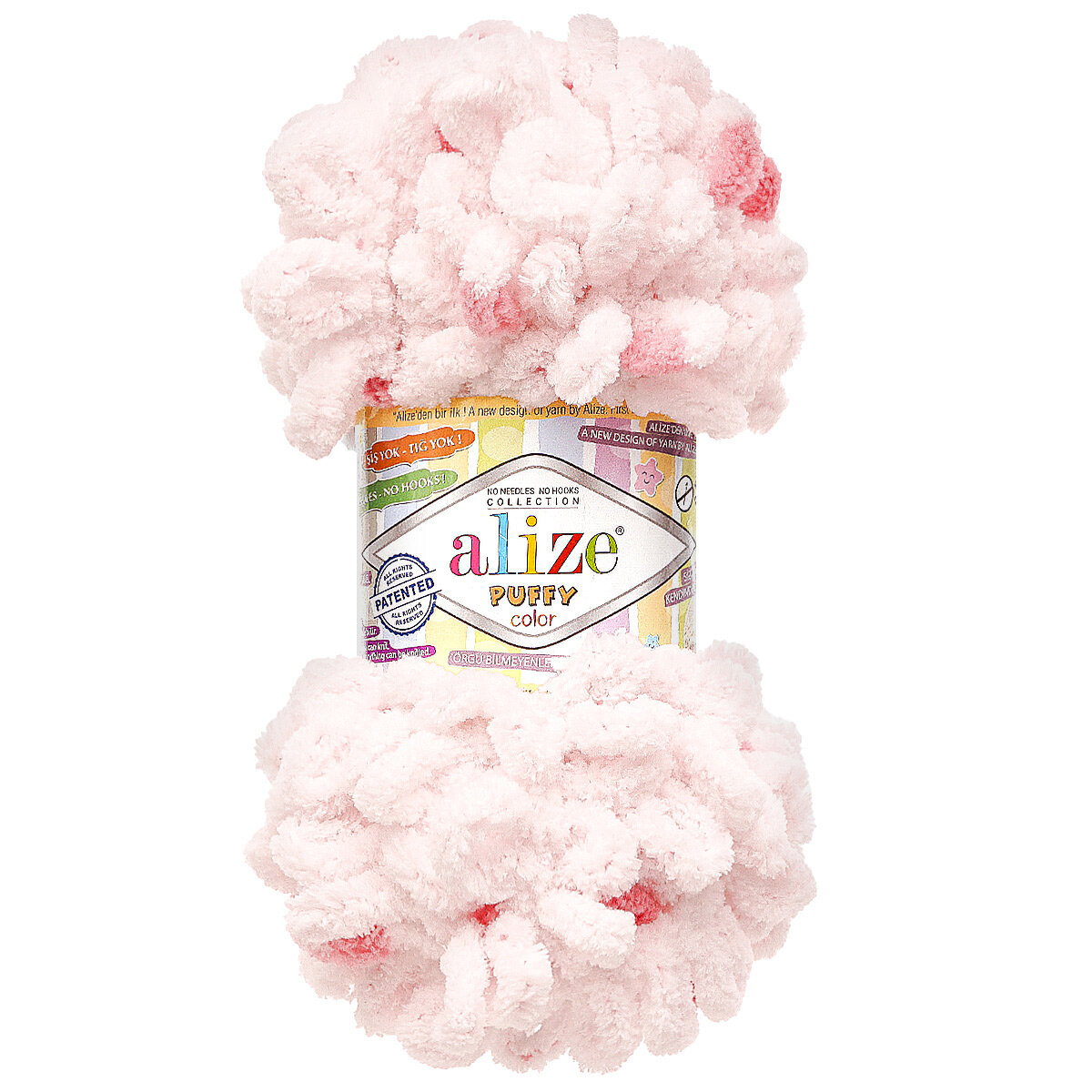 Пряжа PUFFY COLOR (Alize), розово-белый - 5863, 100% микрополиэстер, 5 мотков, 100 г, 9 м.