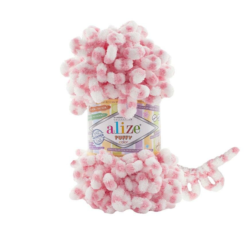 Пряжа PUFFY COLOR (Alize), розово-белый - 5863, 100% микрополиэстер, 5 мотков, 100 г, 9 м.