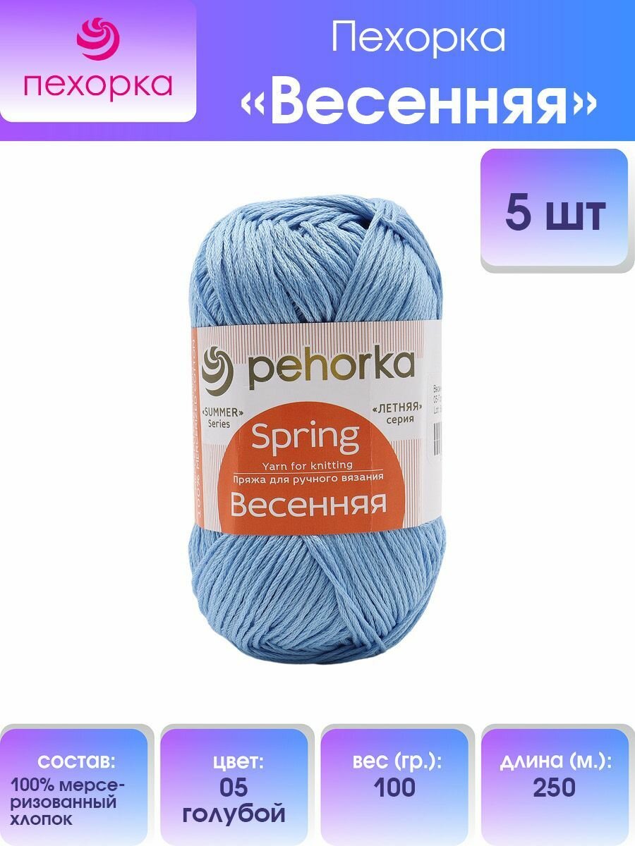Купить Пряжа для вязания Пехорка 'Весенняя' 100г, 250м (100% мерсеризованный хлопок) (05-Голубой), 5 мотков