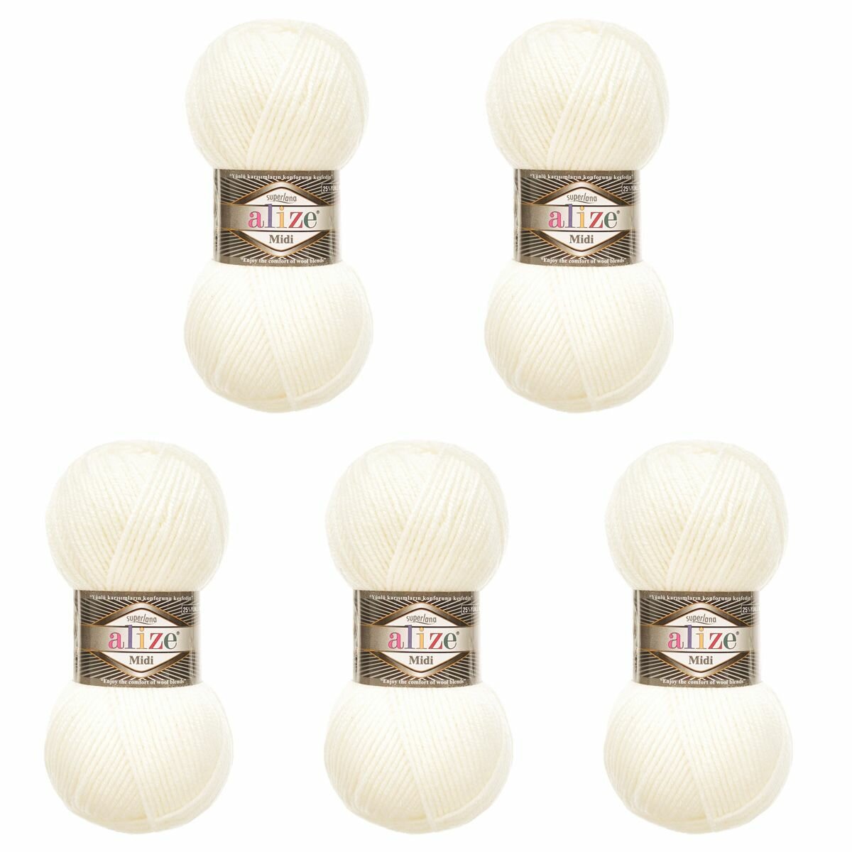 Пряжа ALIZE SUPERLANA MIDI, кремовый - 01, 25% шерсть, 75% акрил, 5 мотков, 100 г, 170 м.