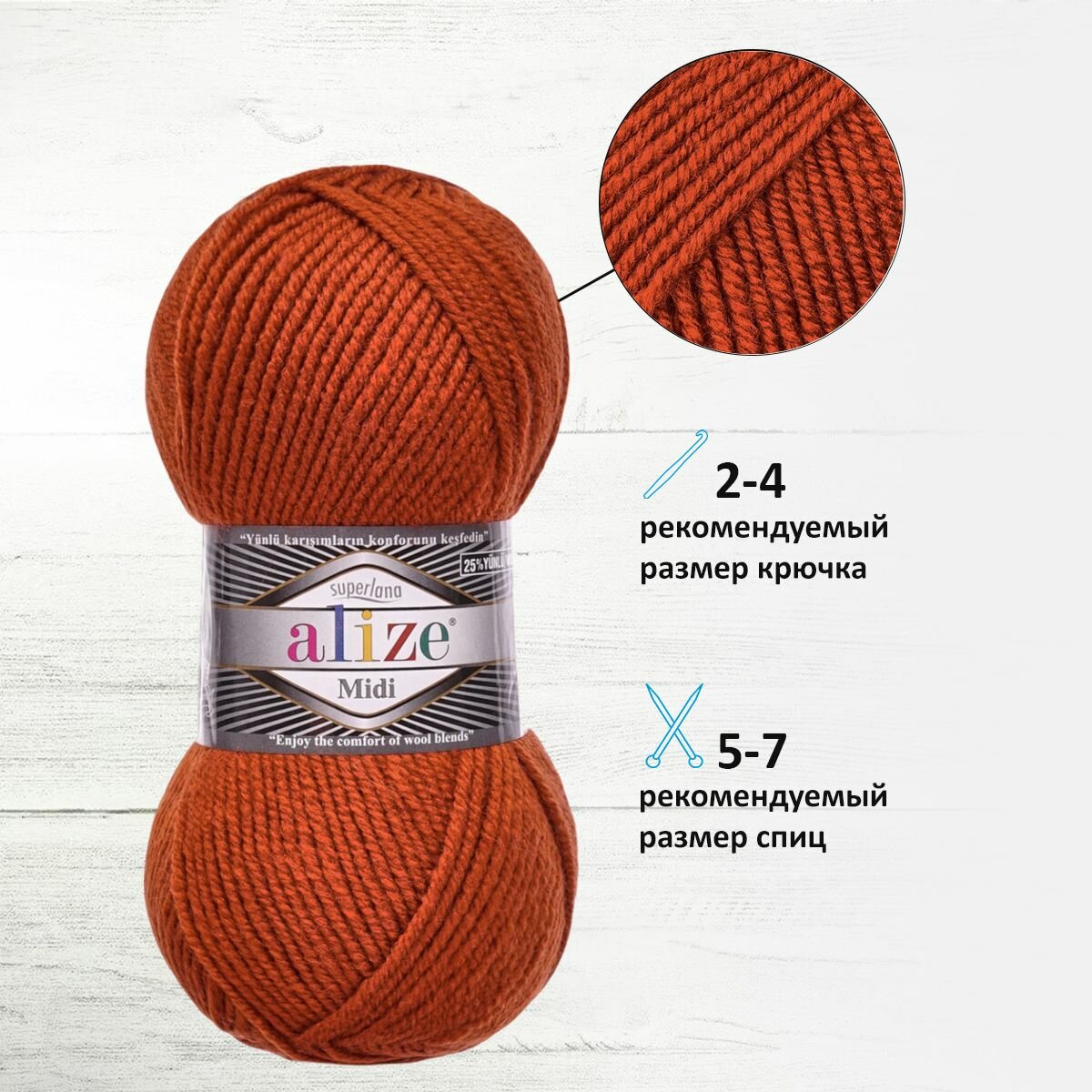 Пряжа для вязания Alize Superlana Midi, цвет 36 терракот, 100г, 170м, 5шт/упак