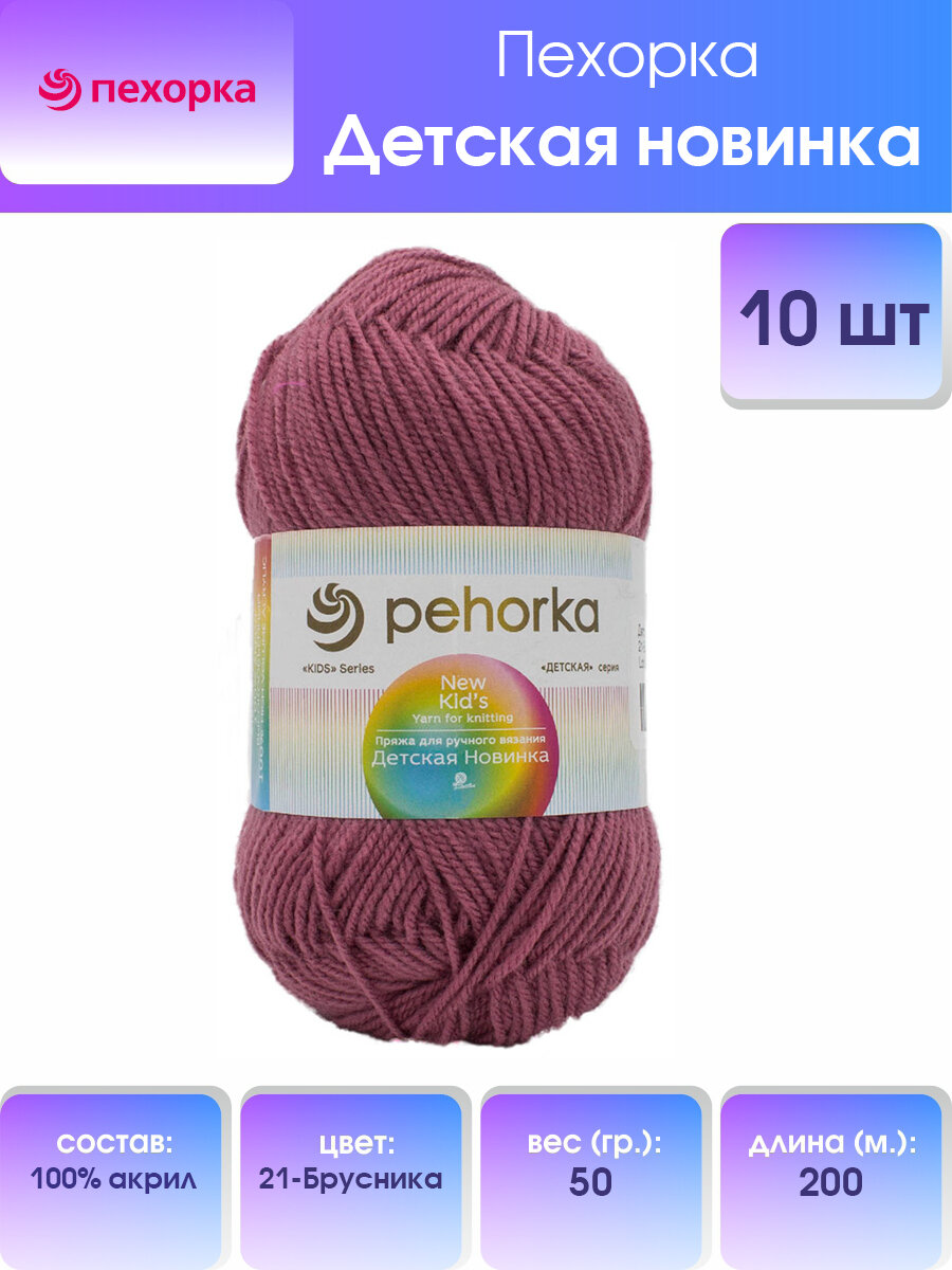 Пряжа Пехорка Детская новинка - 10 мотков 21 брусника 100% акрил высокообъемный 200м/50г