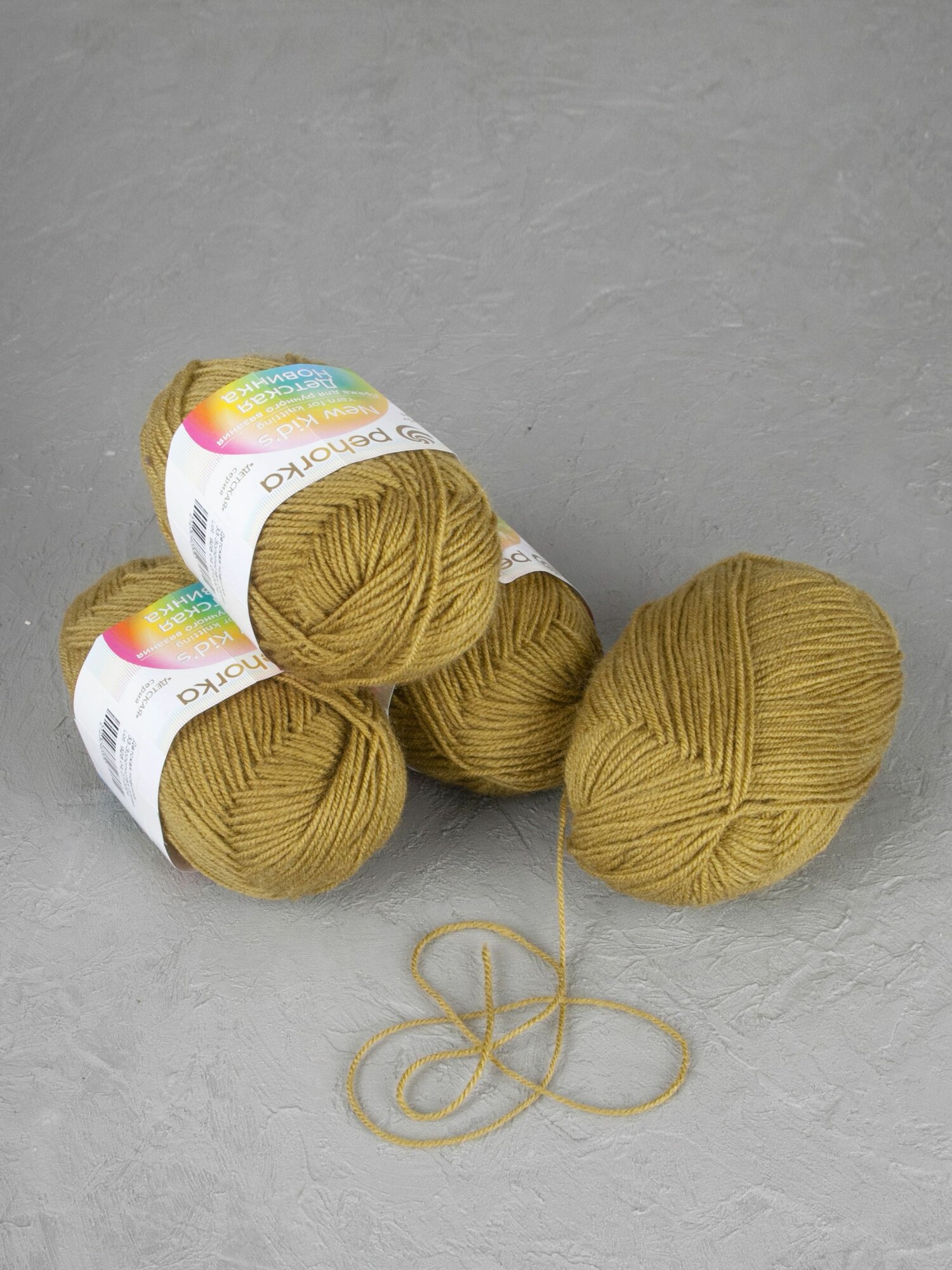 Пряжа детская для вязания Пехорка Pehorka Детская новинка, тонкая, акрил 100%, цвет 033, золотистая олива, 10 шт. по 50 г, 200 м