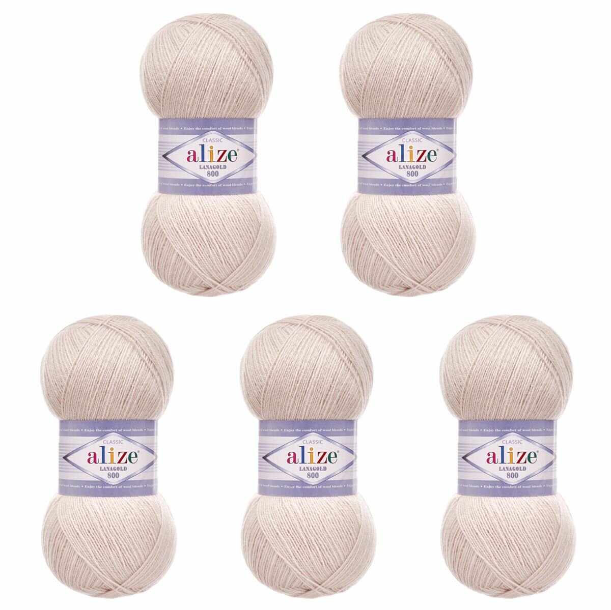 Пряжа Alize Lanagold 800 (Ланаголд 800) - 5 мотков Цвет: 62 молочный (Ланаголд 800) 49% шерсть, 51% акрил 100г 730м