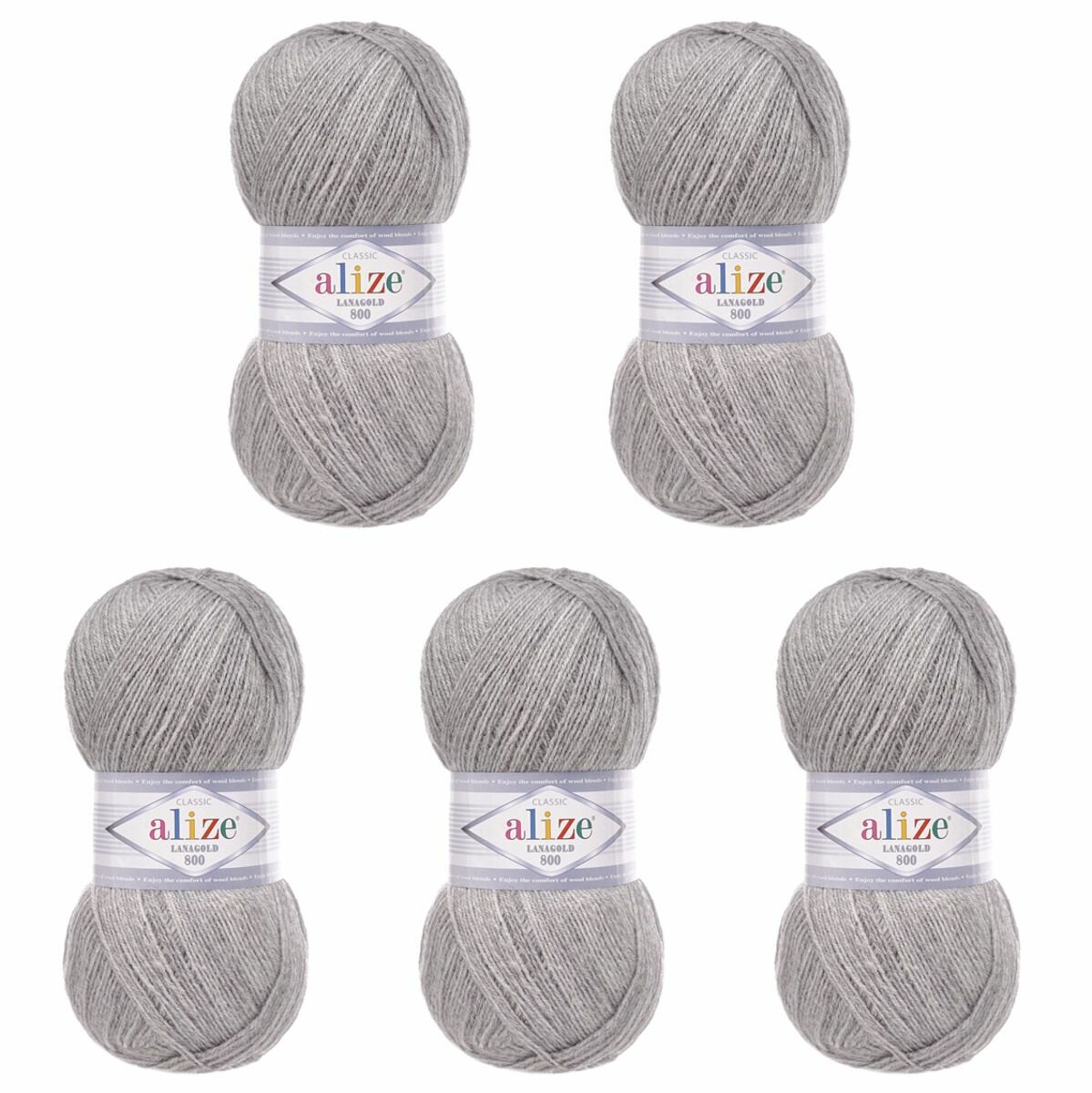 Пряжа Alize Lanagold 800 (Ланаголд 800) - 5 мотков Цвет: 21 серый меланж (Ланаголд 800) 49% шерсть, 51% акрил 100г 730м