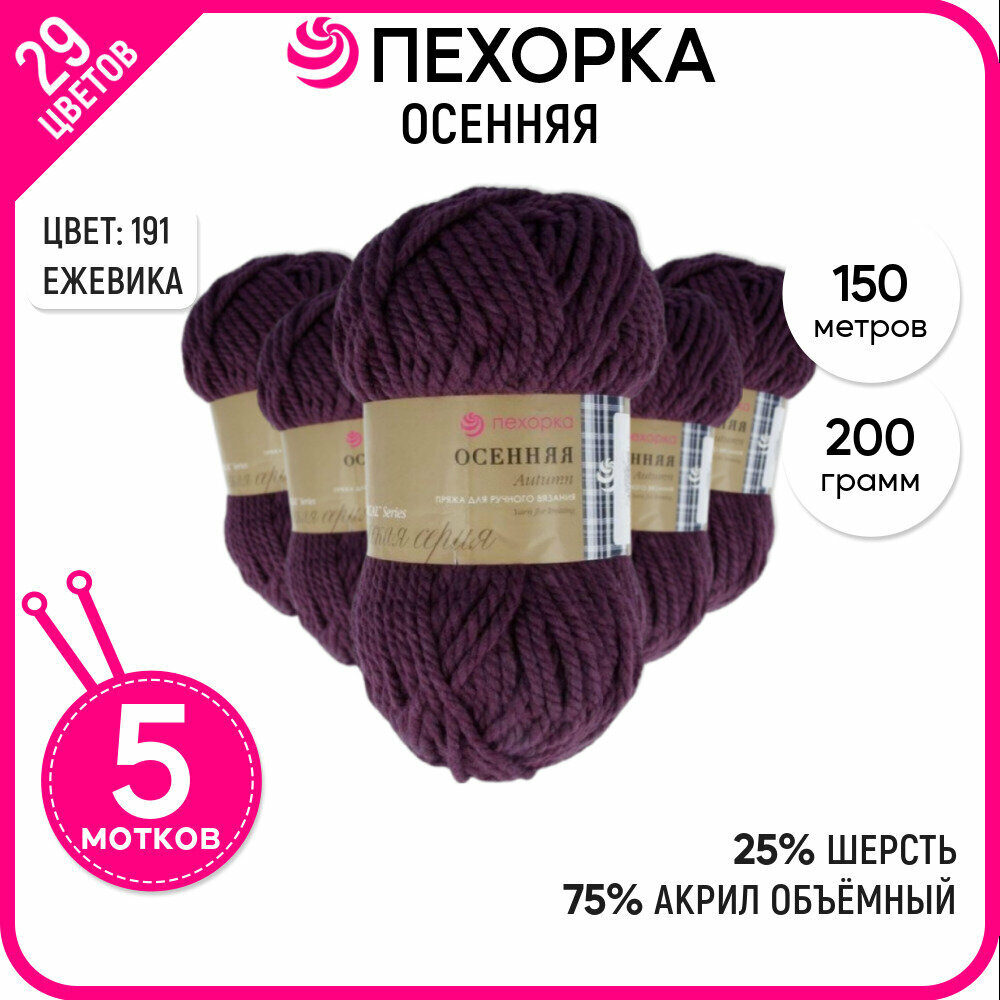 Купить Пряжа для вязания Пехорка 'Осенняя' 200г, 150м (25% шерсть, 75% акрил) (191 ежевика), 5 мотков