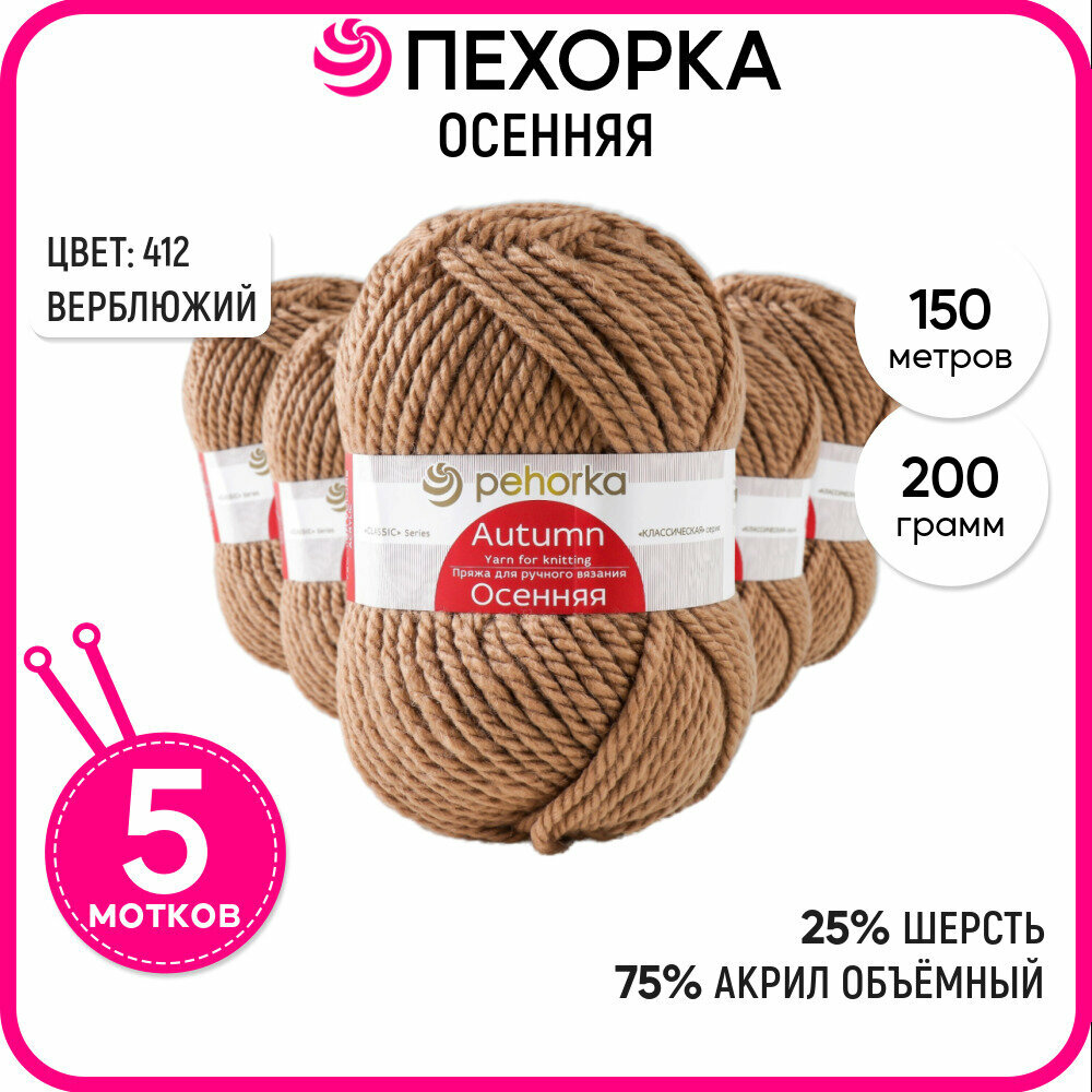 Пряжа Пехорка Осенняя цвет 412 верблюжий (200г/150м, упаковка 5 мотков)