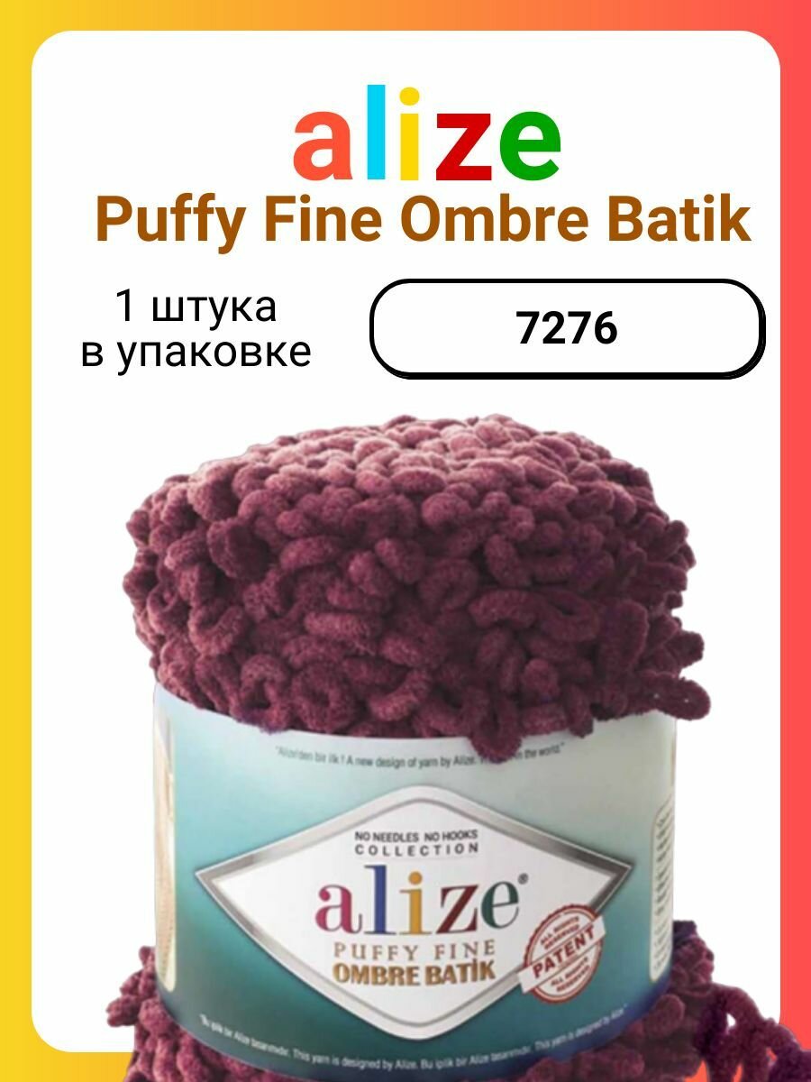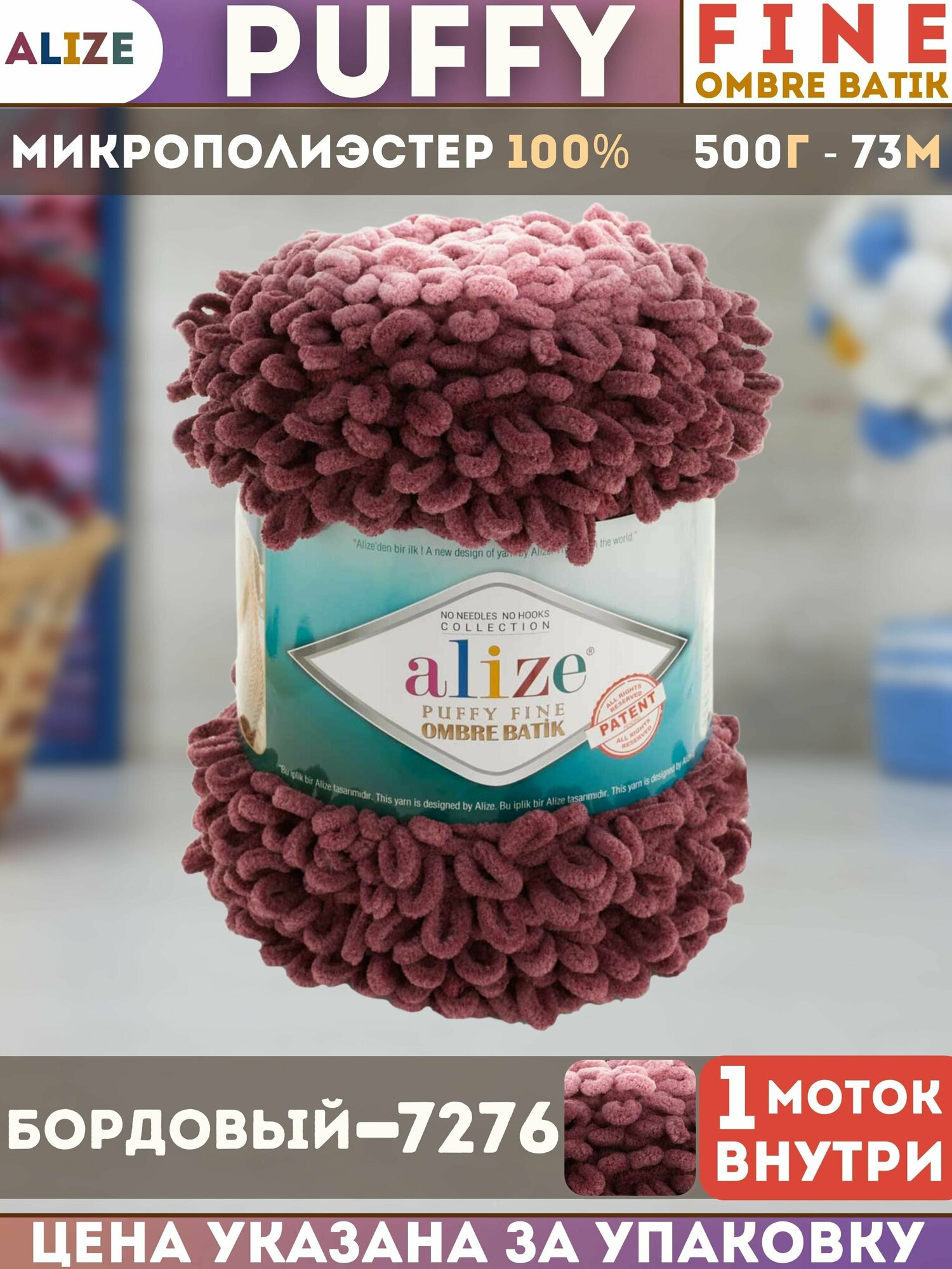Купить Пряжа Alize Puffy Fine Ombre Batik, 500 г, 73 м, 1 шт., 7276 бордовый