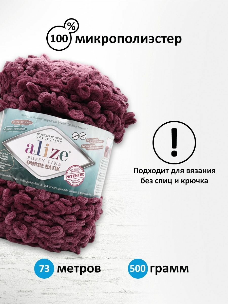 СохранитьПряжа Alize Puffy Fine Ombre Batik, 500 г, 73 м, 1 шт., 7276 бордовый интересное: