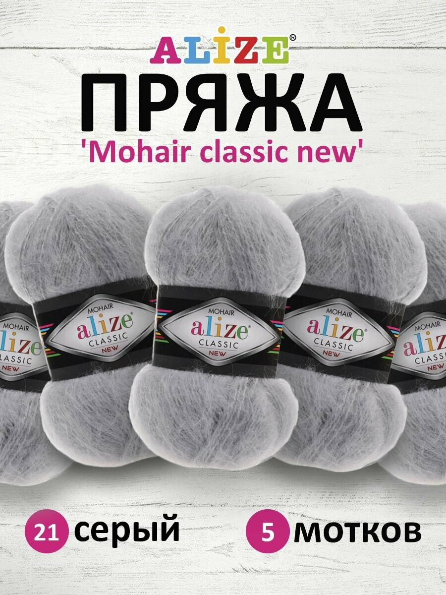 Купить Пряжа для вязания ALIZE 'Mohair classic new', 100г, 200м (мохер, шерсть, акрил) (21 серый), 5 мотков