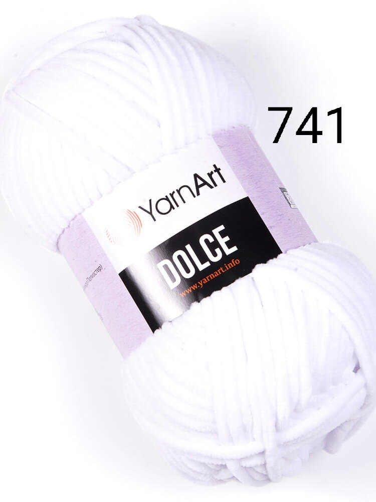 Плюшевая пряжа YarnArt Dolce (Дольче) - 1 моток 741 белый, для вязания игрушек, 100% микрополиэстер 120м/100г