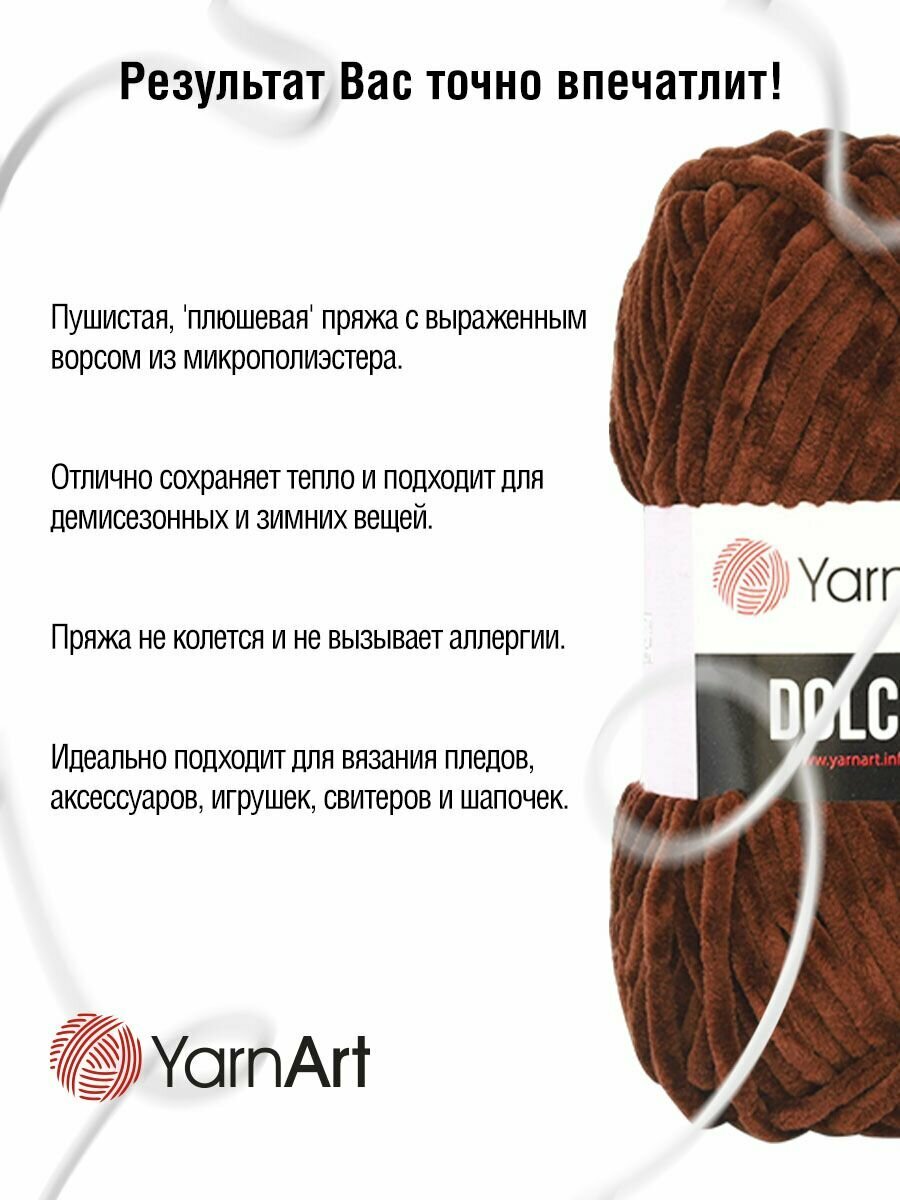 Плюшевая пряжа YarnArt Dolce (Дольче) - 1 моток 775 темно-коричневый, для вязания игрушек, 100% микрополиэстер 120м/100г
