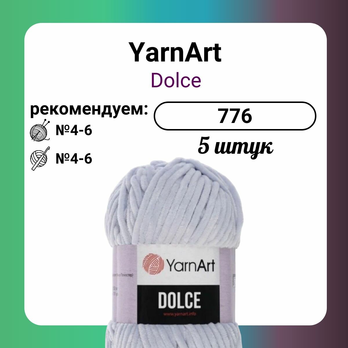 Пряжа для вязания YarnArt 'Dolce' 100гр 120м (100% микрополиэстер) (776 светло-фиолетовый), 5 мотков