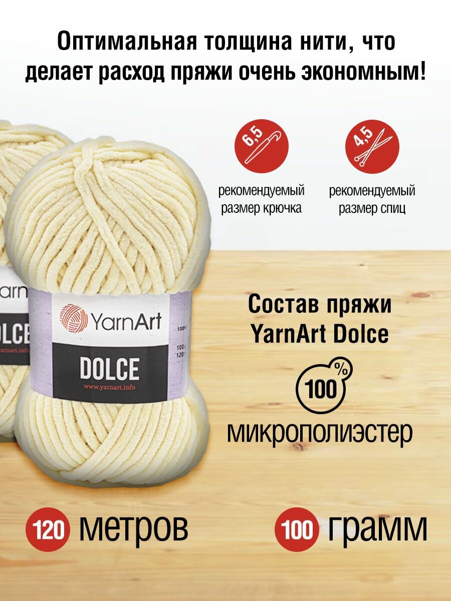 Плюшевая пряжа YarnArt Dolce (Дольче) - 5 мотков 745 кремовый, для вязания игрушек, 100% микрополиэстер 120м/100г