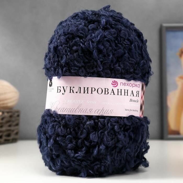 Пряжа Буклированная (Пехорка), индиго - 156, 30% мохер, 20% п/тонкая шерсть, 50% акрил высокооб, 5 мотков, 200 г, 220 м.