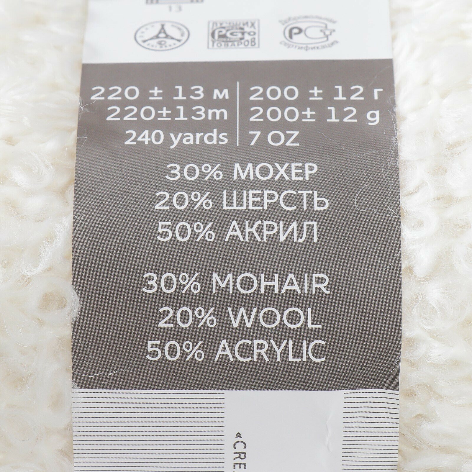 Пряжа Пехорка Буклированная белый (001), 30%мохер/20%шерсть/50%акрил, 220м, 200г, 1шт