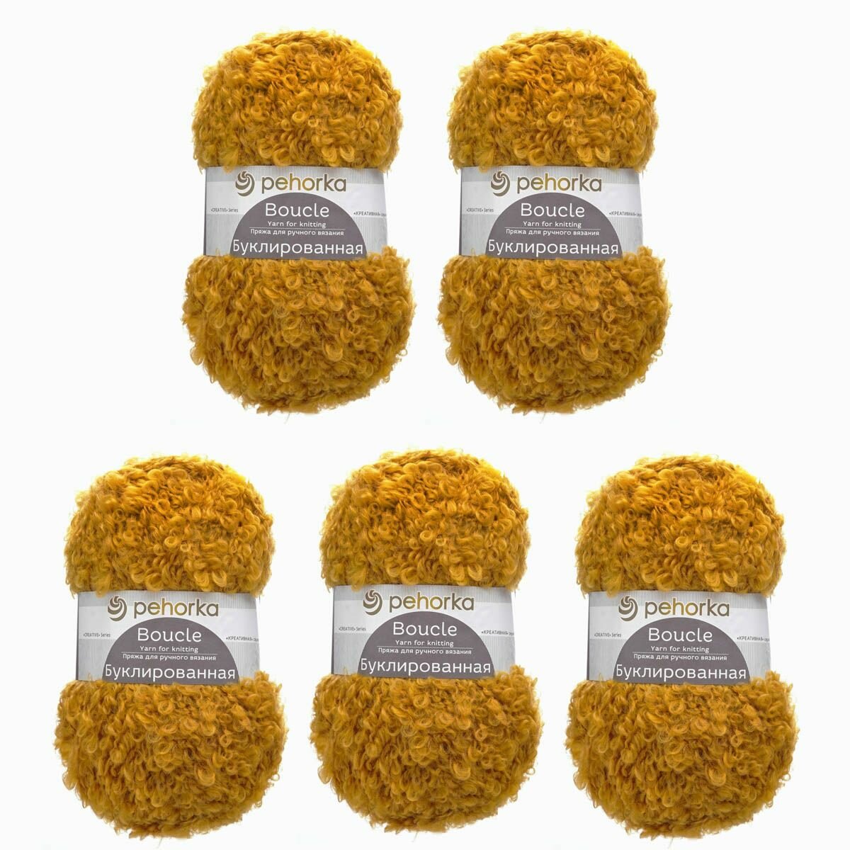 Пряжа Пехорка Буклированная цвет 447 горчица (200г/220м, упаковка 5 мотков)
