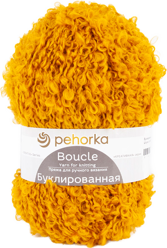 Пряжа Пехорка Буклированная 447 горчица 30% мохер, 20% шерсть, 50% акрил 200г 220м 1шт
