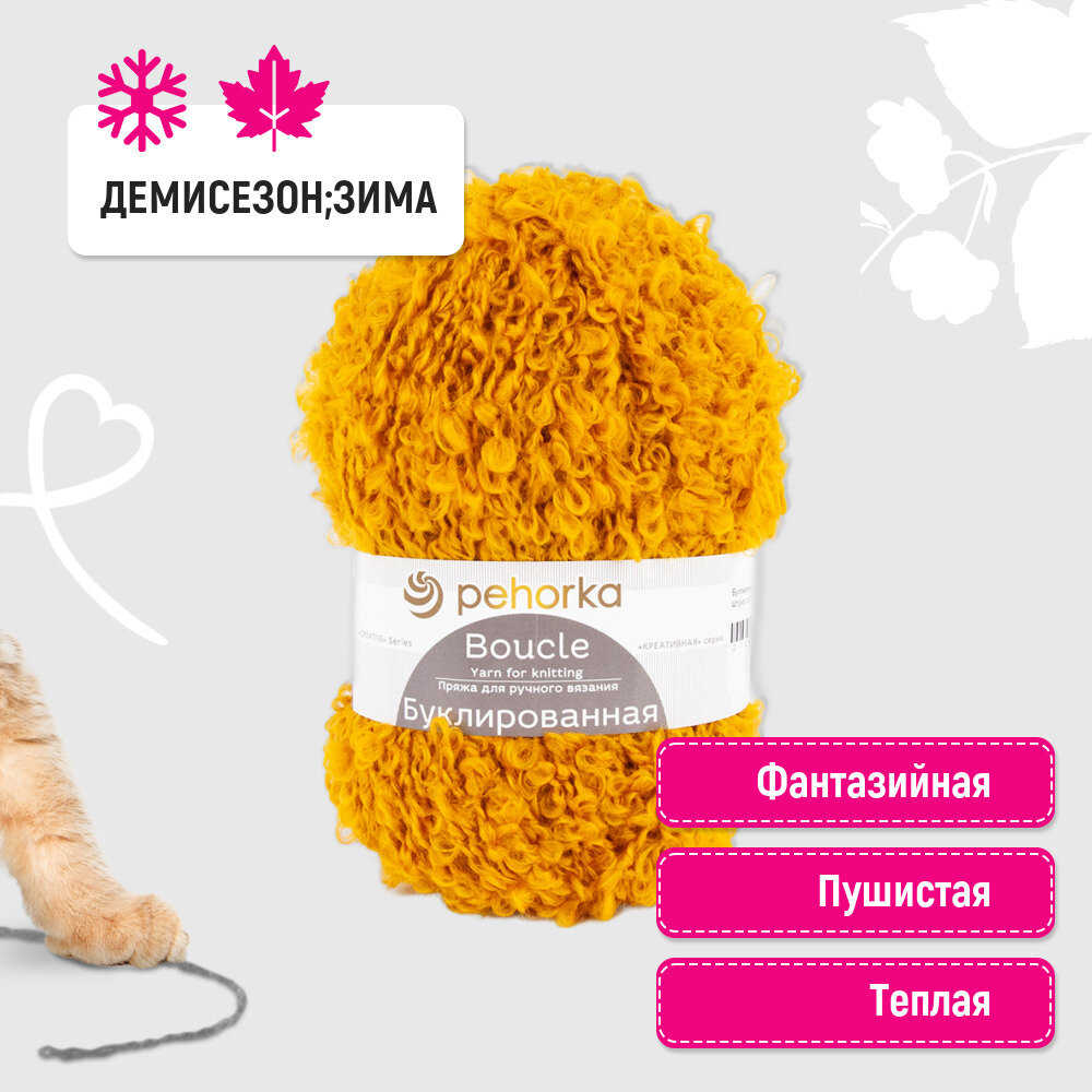 Пряжа Пехорка Буклированная горчица (447), 30%мохер/20%шерсть/50%акрил, 220м, 200г, 1шт