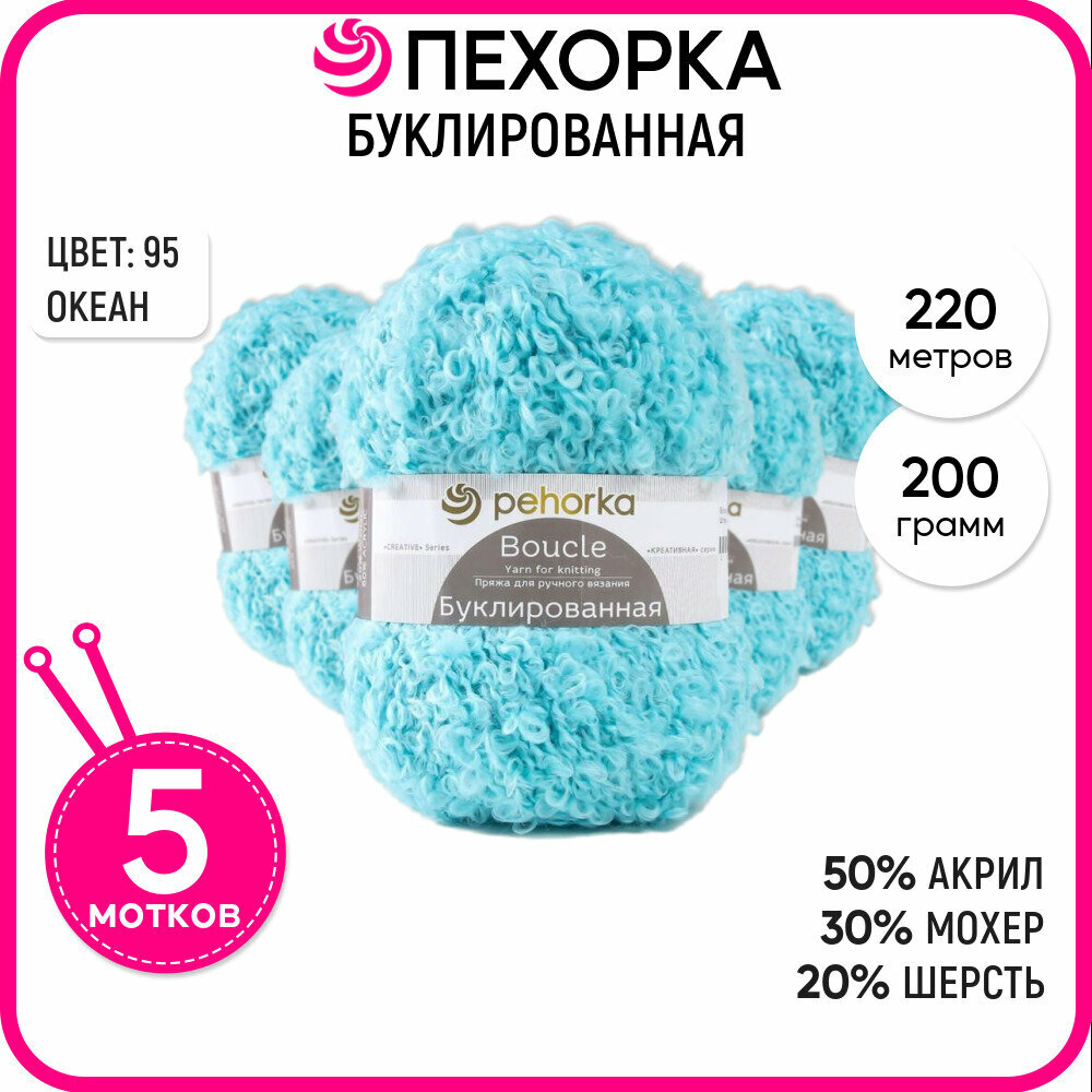 Пряжа Пехорка Буклированная цвет 95 океан (200г/220м, упаковка 5 мотков)