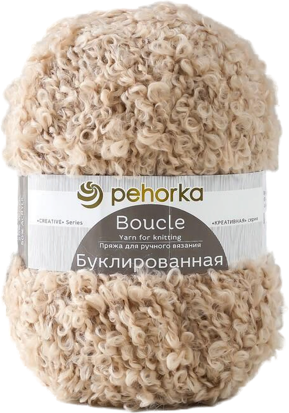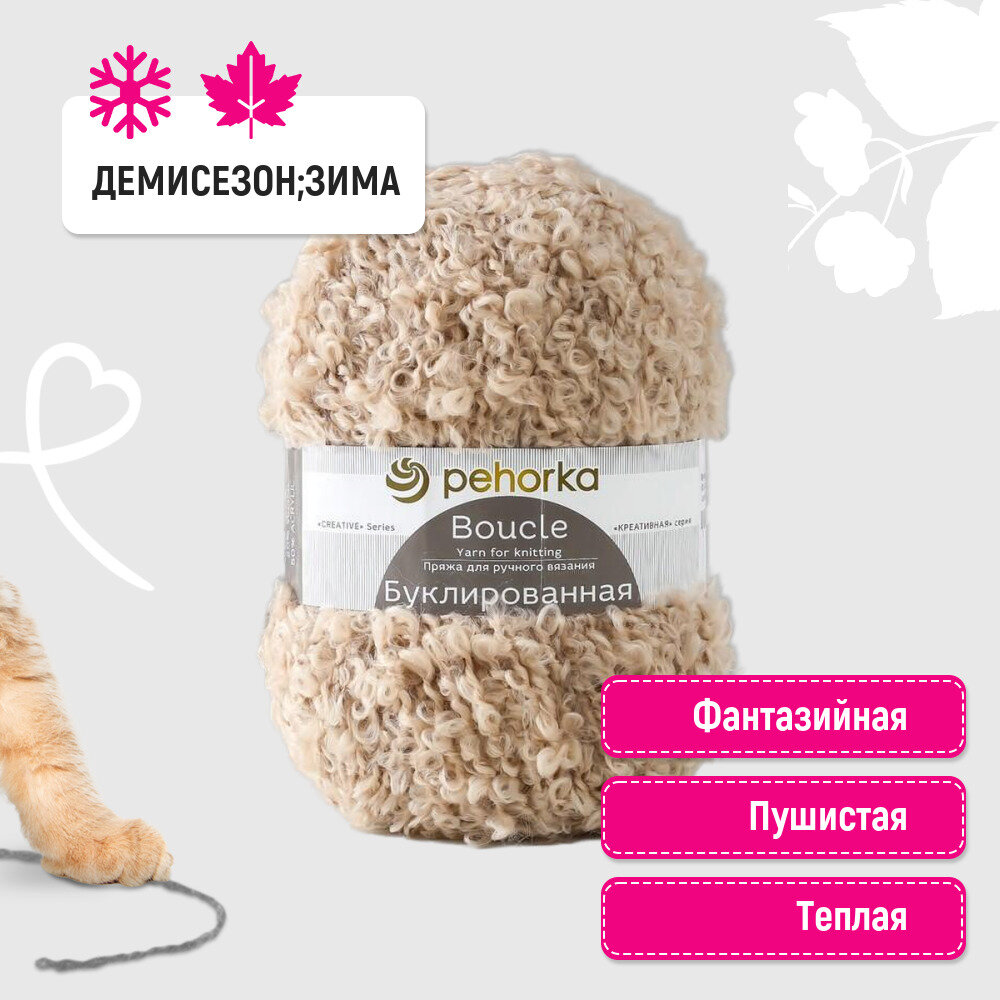 Пряжа Пехорка Буклированная светло бежевый (003), 30%мохер/20%шерсть/50%акрил, 220м, 200г, 1шт