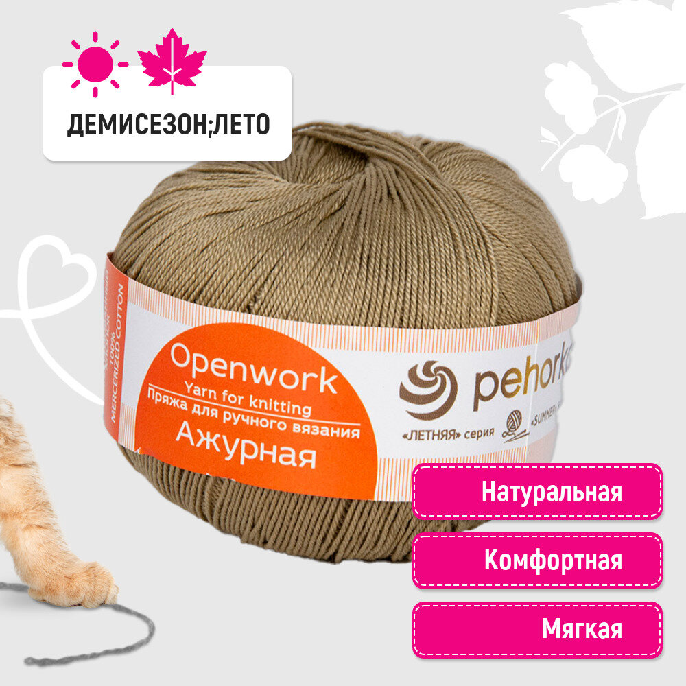 Пряжа Пехорка, Pehorka Ажурная, средняя, хлопок мерсеризованный 100%, цвет 393, светлый моренго, 10 шт. по 50 г, 280 м