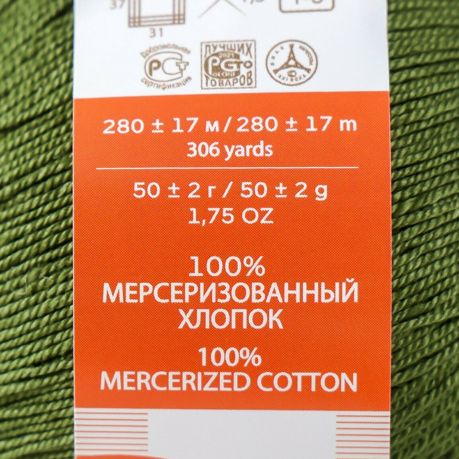 Пряжа Пехорский текстиль "Ажурная", 100% мерсеризованный хлопок, 280 м, №478, цвет Защитный, 10 шт по 50 г