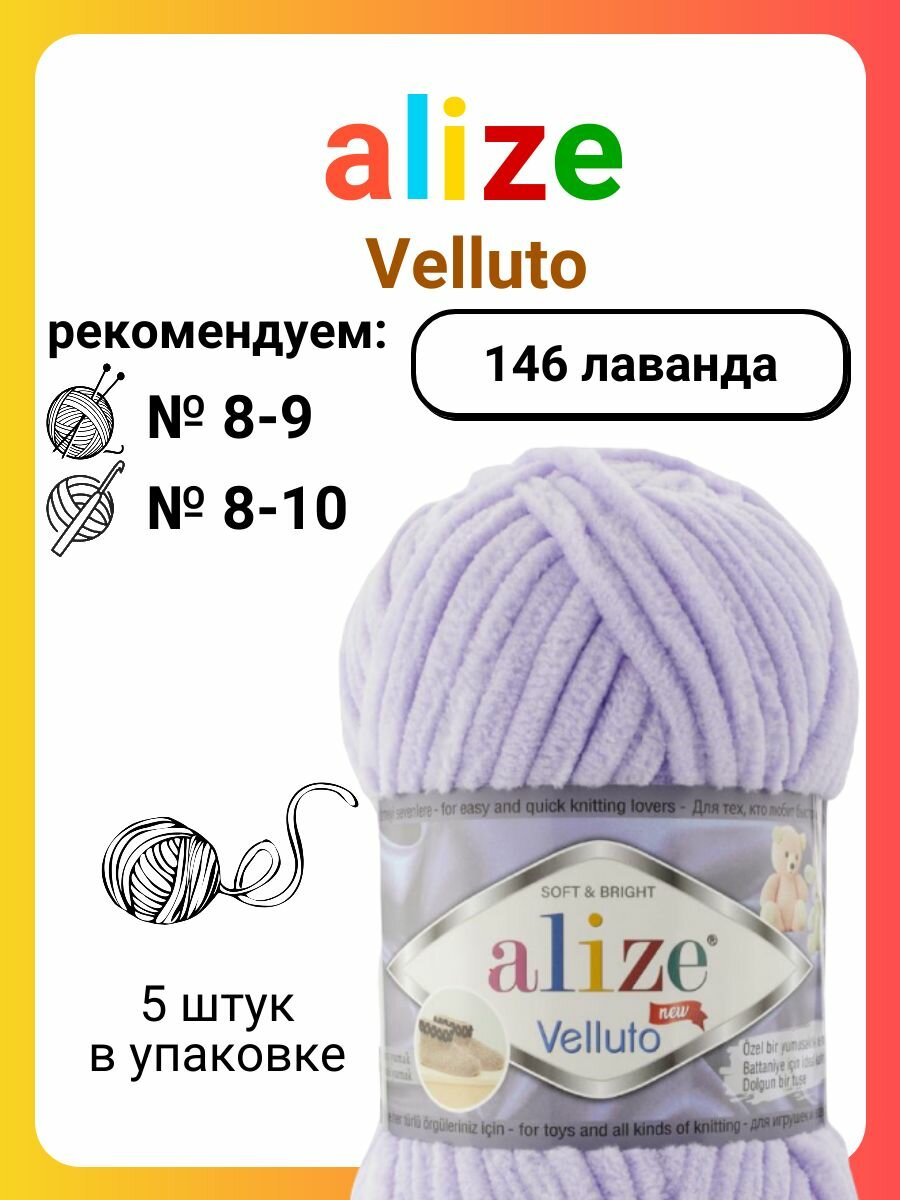 Купить Пряжа Alize Velluto светло-сиреневый (146), 100%микрополиэстер, 68м, 100г, 5шт
